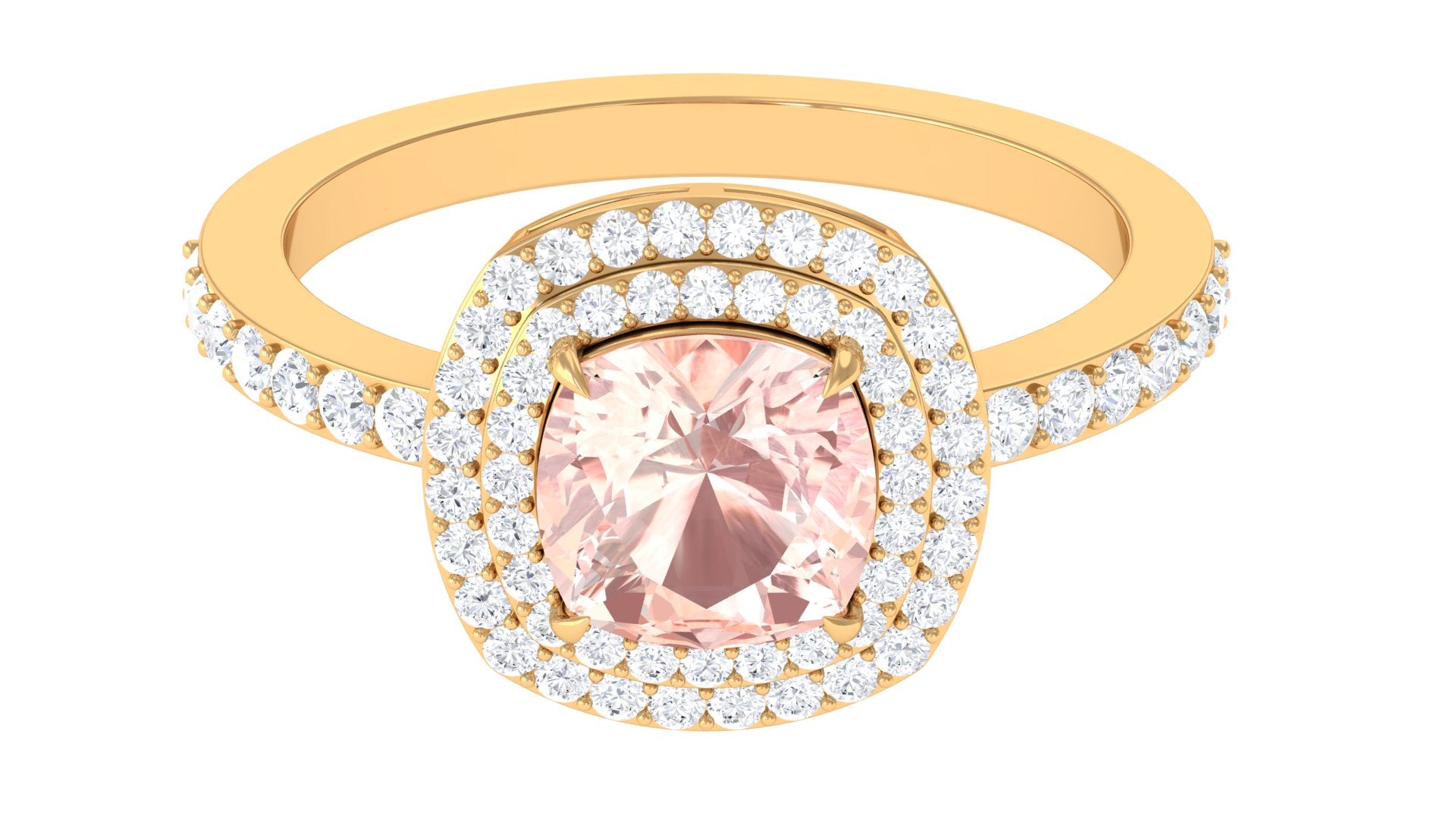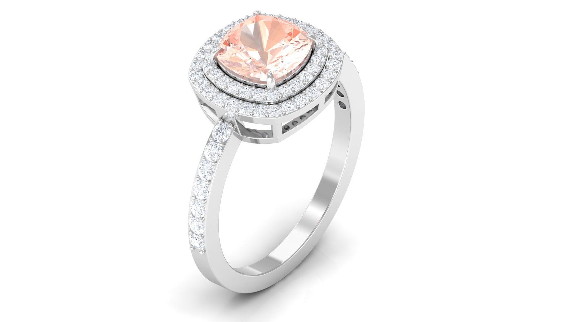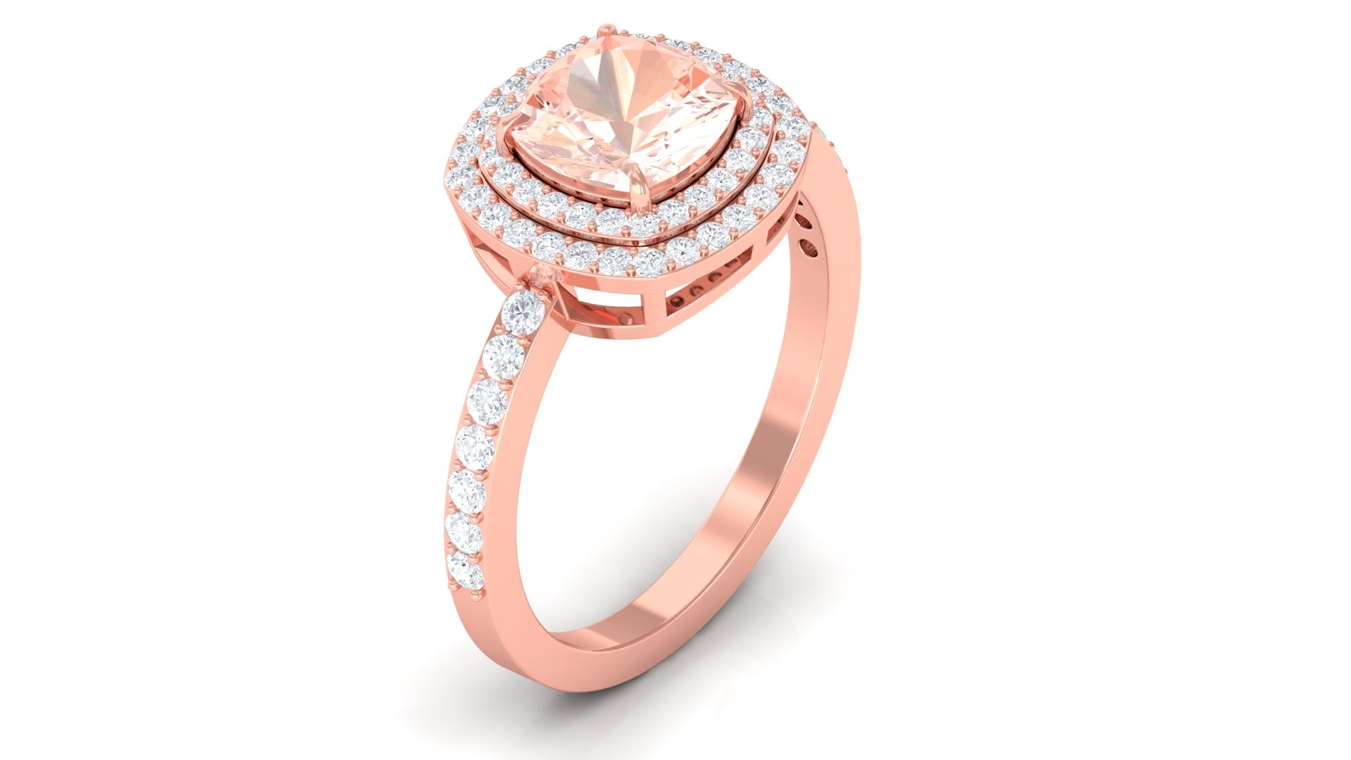 Cushion Cut Morganite Double Halo Engagement Ring with Moissanite