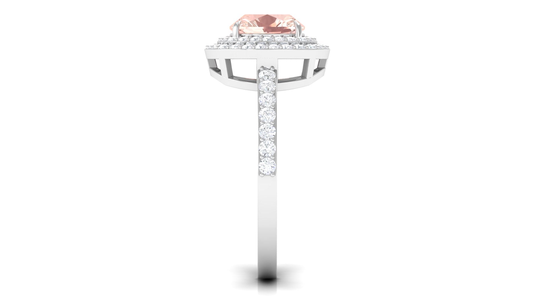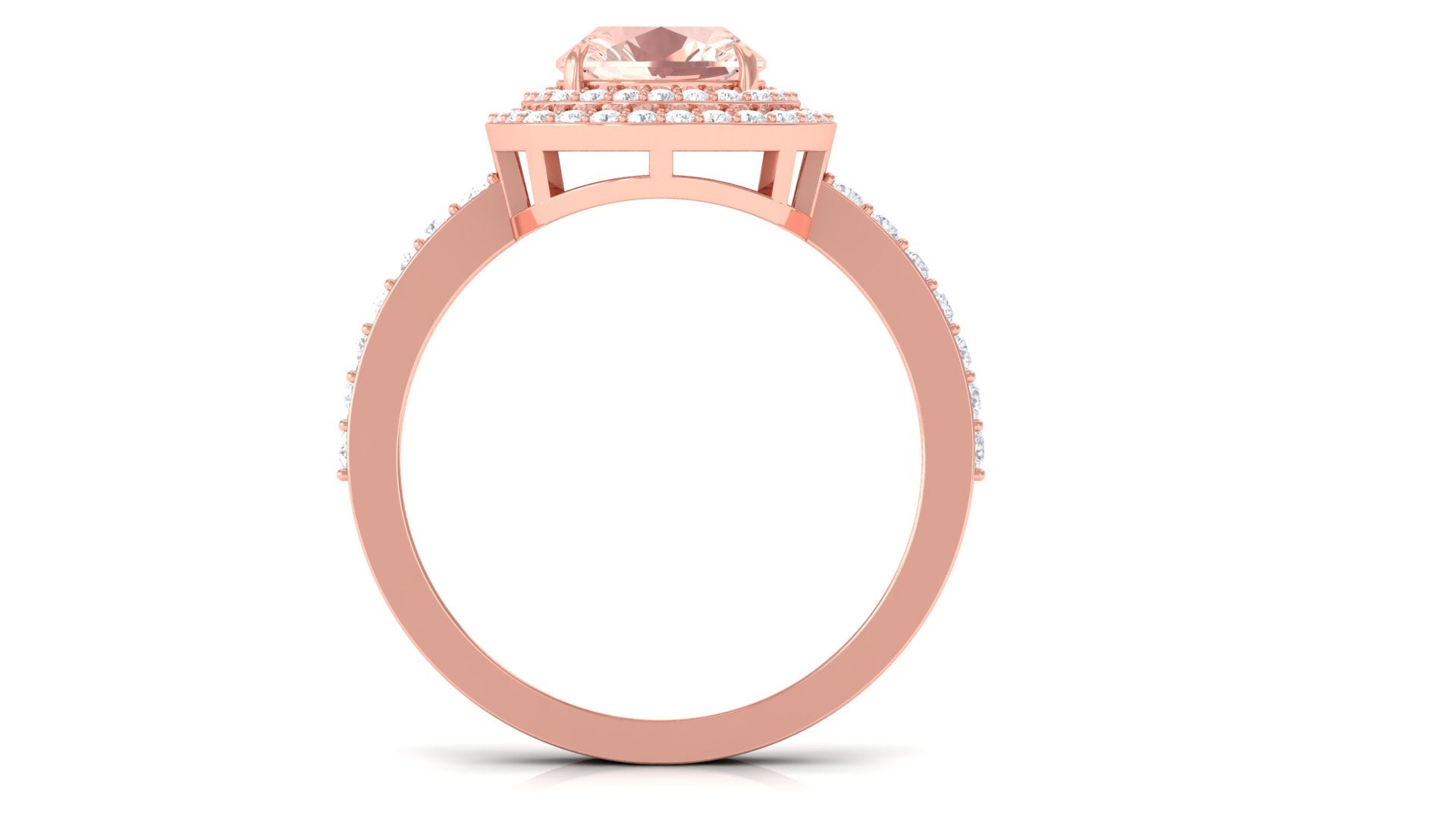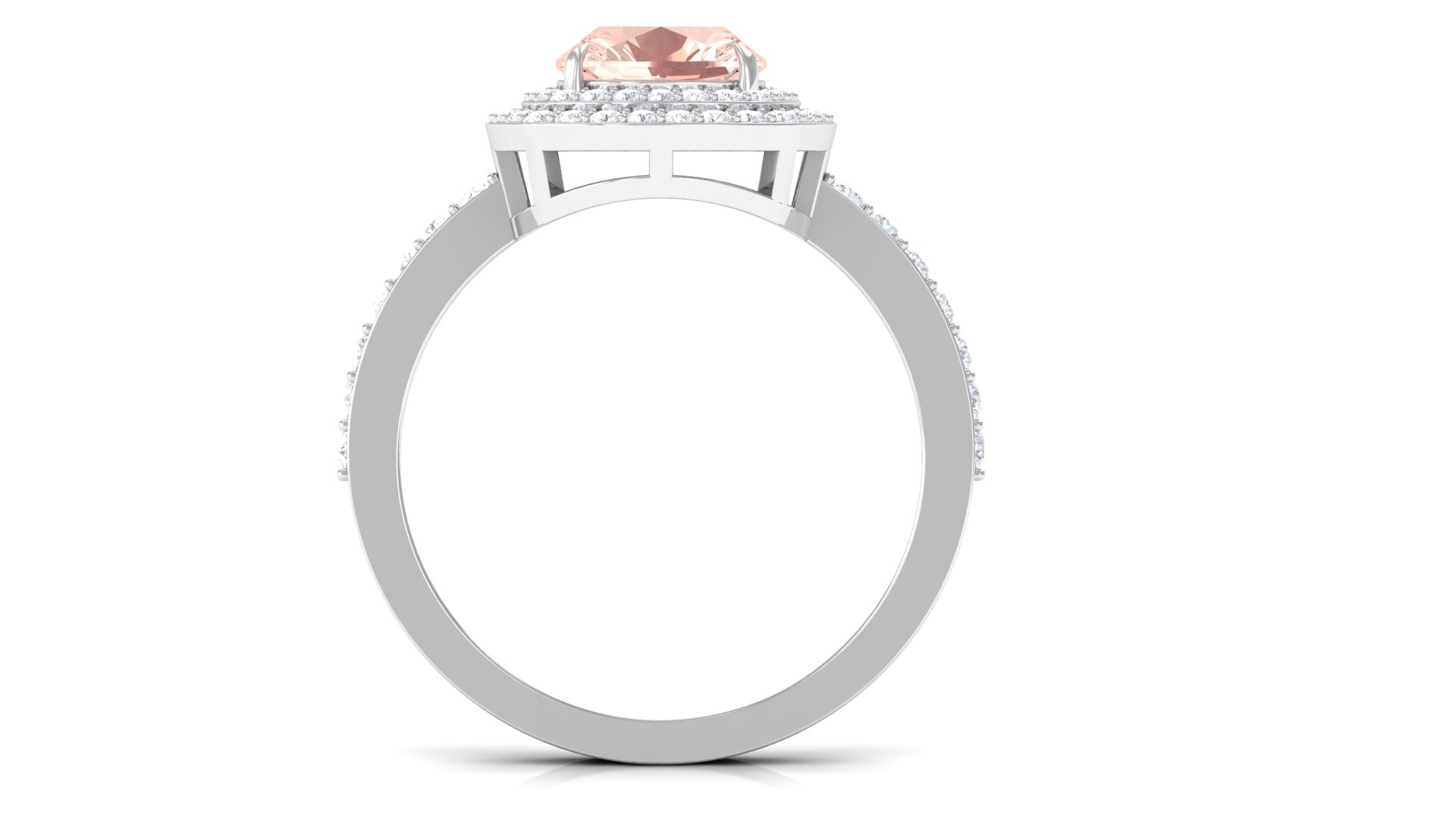 Cushion Cut Morganite Double Halo Engagement Ring with Moissanite