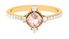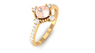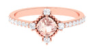 Cushion Cut Morganite Solitaire Engagement Ring with Diamond Side Stones