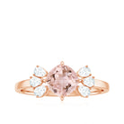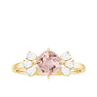 Cushion Cut Morganite Solitaire Ring with Diamond Trio