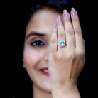 Make your YES moment extra special with this beautifully designed Sky Blue Topaz Engagement Ring. Crafted in warm 14k yellow gold plated silver, this Halo Ring brings together elegance, sparkle, and a modern twist on a classic design. At the heart of the ring sits a stunning 8 MM cushion cut Sky Blue Topaz, carefully set with four prongs for security and shine. Surrounding the center stone is a sparkling round lab grown diamond halo, placed to catch the light and add just the right amount of brilliance. What makes this piece even more special is the diamond-studded band. Lab grown diamonds continue down the shank, giving the 2 Carat Engagement Ring sparkle from every angle. The contrast between AAA quality sky blue topaz and EF-VS quality lab grown diamonds creates a perfect balance between modern style and timeless beauty. Whether worn as an engagement ring or a statement ring, this Sky Blue Topaz and Diamond Ring is a piece to fall in love with, and to celebrate love with, every single day.