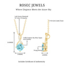 This elegant Sky Blue Topaz Promise Necklace is a beautiful blend of meaning and style. Crafted with care in yellow gold plated sterling silver, the design features a graceful shape that is both modern and timeless. At the center is a bright 8 MM cushion cut Sky Blue Topaz, held securely in prong setting. Above the gemstone is a lovely infinity symbol, set with sparkling round cut lab grown diamonds. The infinity design stands for forever love, deep connections, and unbreakable bonds. It adds a meaningful touch to the pendant, making it more than just a beautiful accessory. This Infinity Symbol Necklace hangs on a cable chain, making it easy to wear alone or layer with other pieces. It is simple, yet eye-catching, perfect for adding a bit of shine to your everyday style or finishing off a dressy look. The Blue Topaz and Diamond Necklace makes a wonderful gift for birthdays, anniversaries, or just as a special treat to yourself. It symbolizes peace, strength, and love, all in one graceful design. Packaged in a signature jewelry box, this piece is ready to be gifted or cherished for years to come.