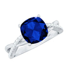 Recognized as an Engagement Ring, showcasing a central Cushion-Cut lab grown blue sapphire as the Solitaire gem. This exquisite gem is accentuated by a Prong Setting and further enhanced by Round Brilliant Diamond stones, delicately placed in a Prong Setting. Notably, this ring also holds the distinction of being a Crossover Ring design.