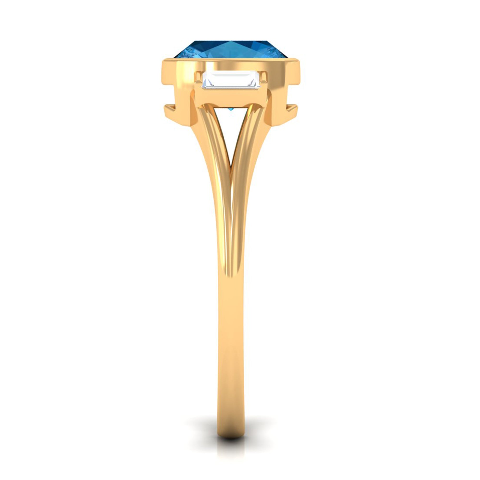 Cushion Cut Swiss Blue Topaz Solitaire Ring with Diamond in Split Shank