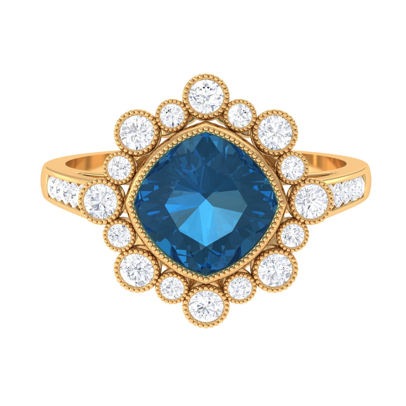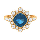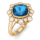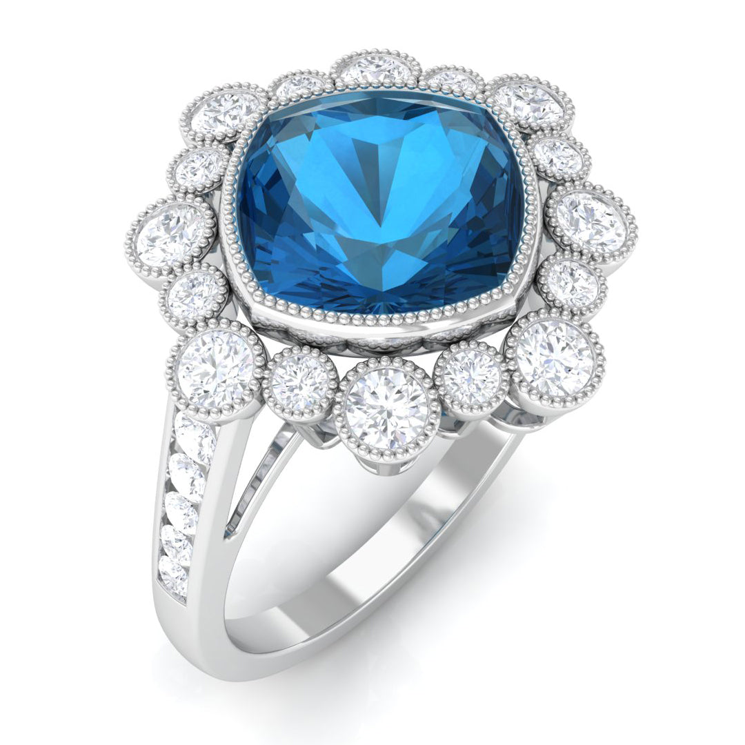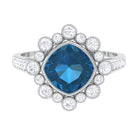 Cushion London Blue Topaz Cocktail Ring with Diamond