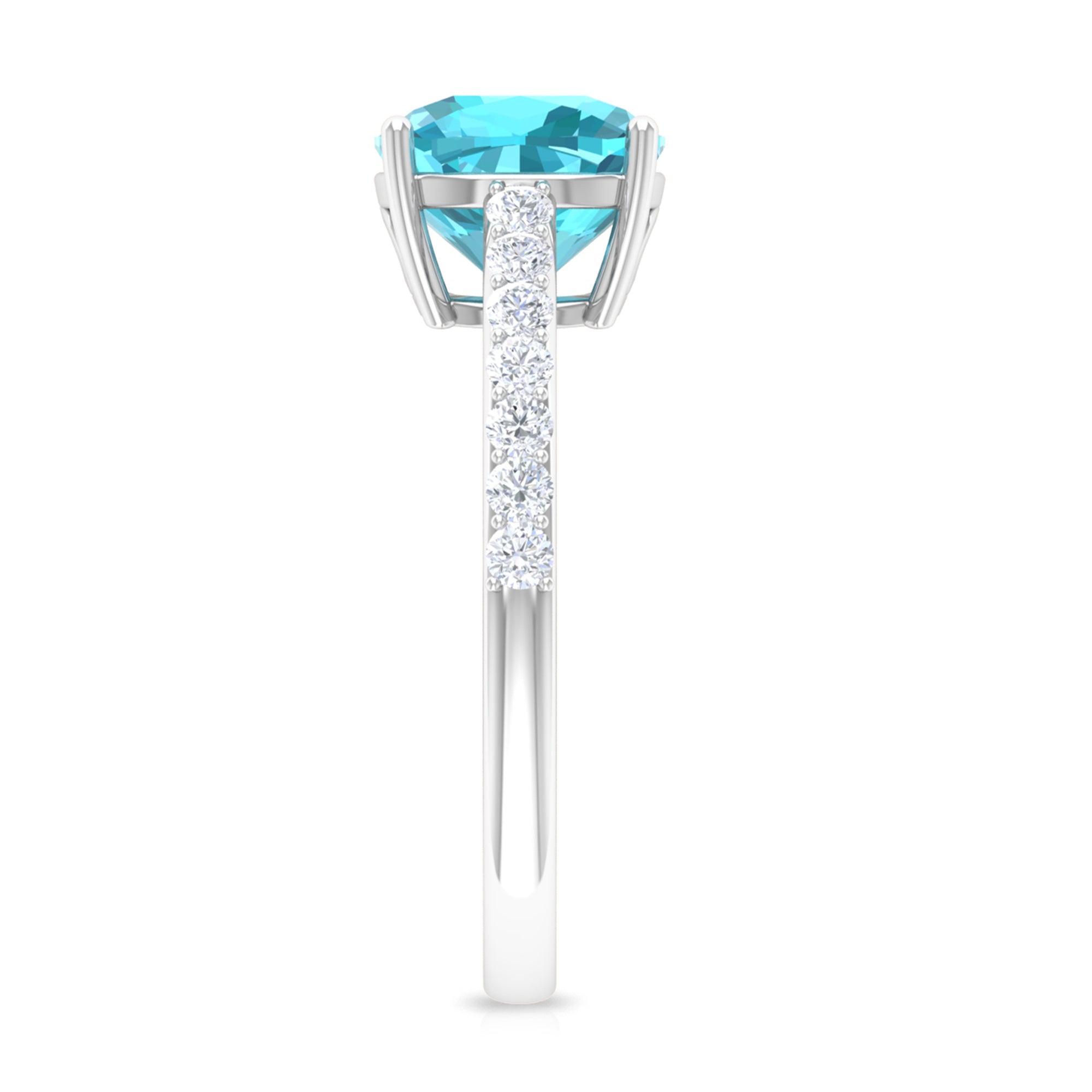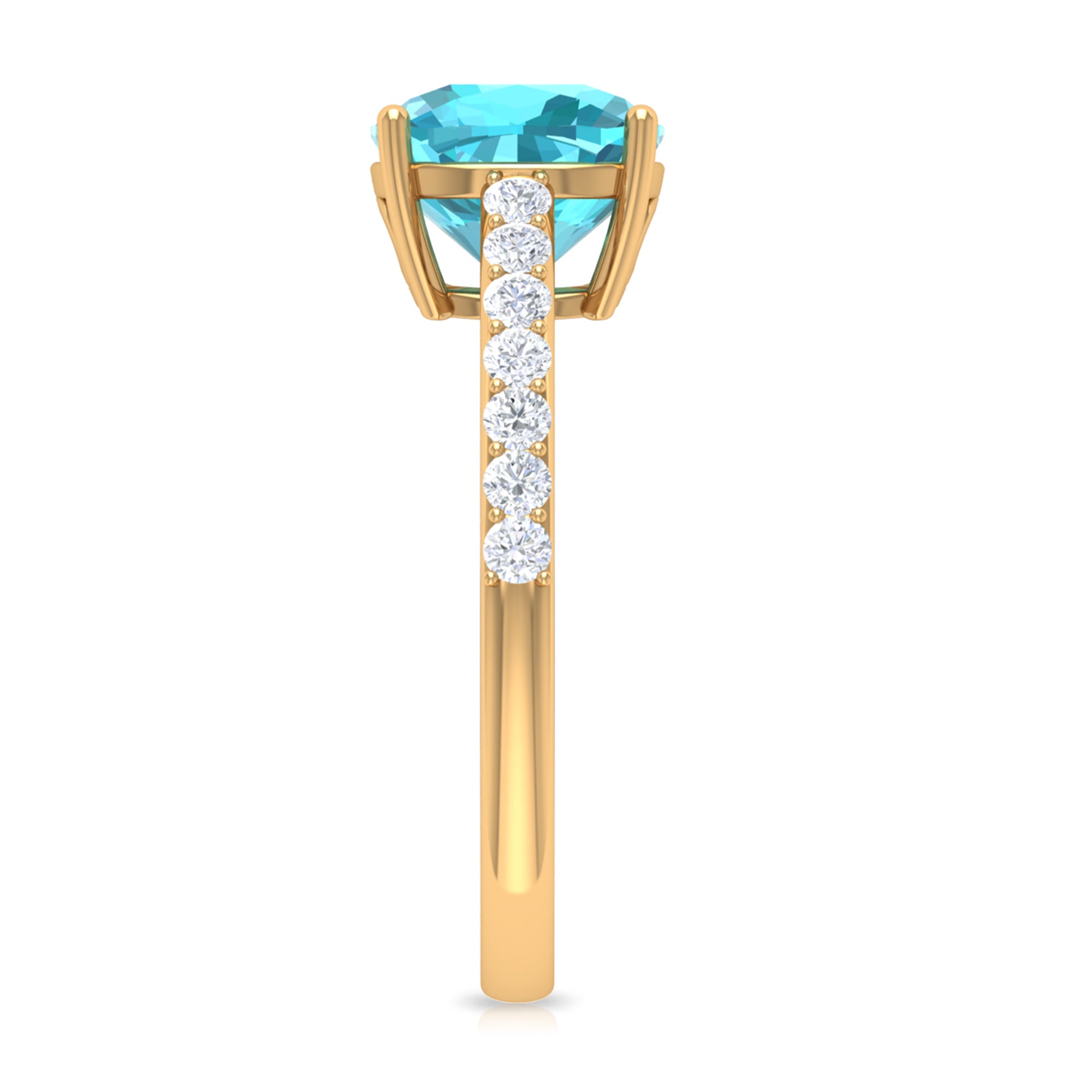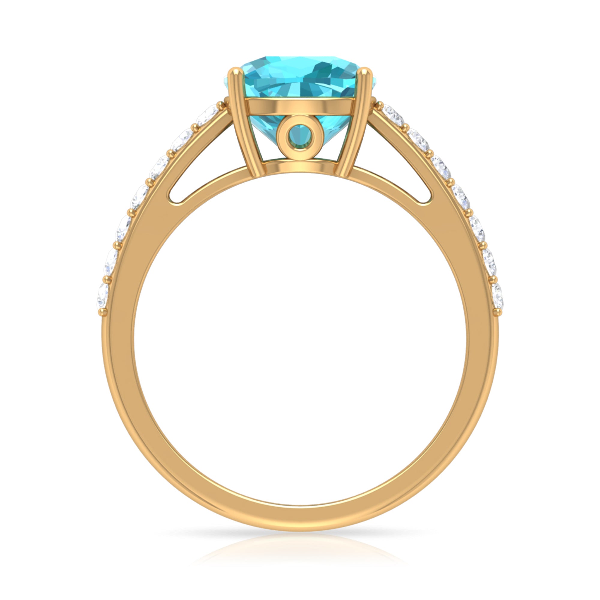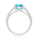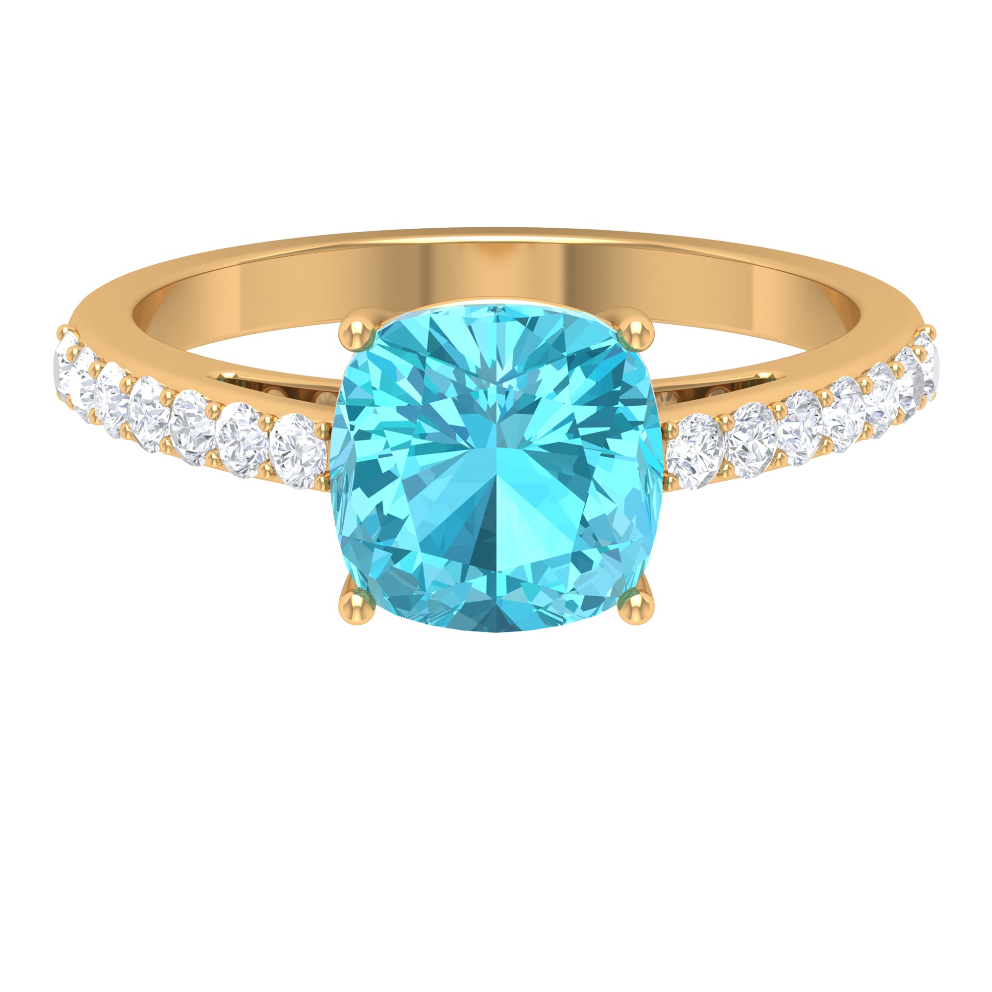 Cushion Shape Swiss Blue Topaz Solitaire Ring with Diamond