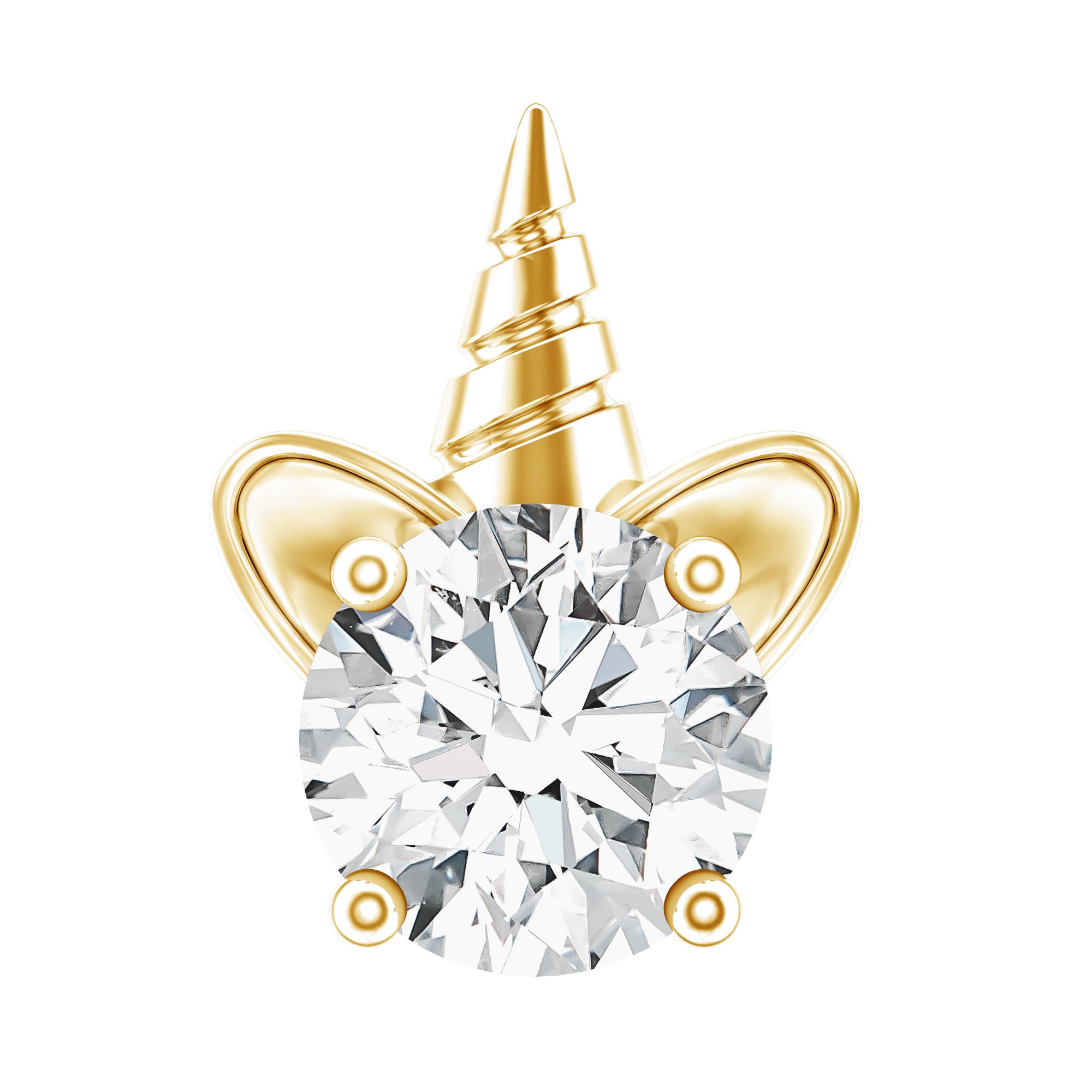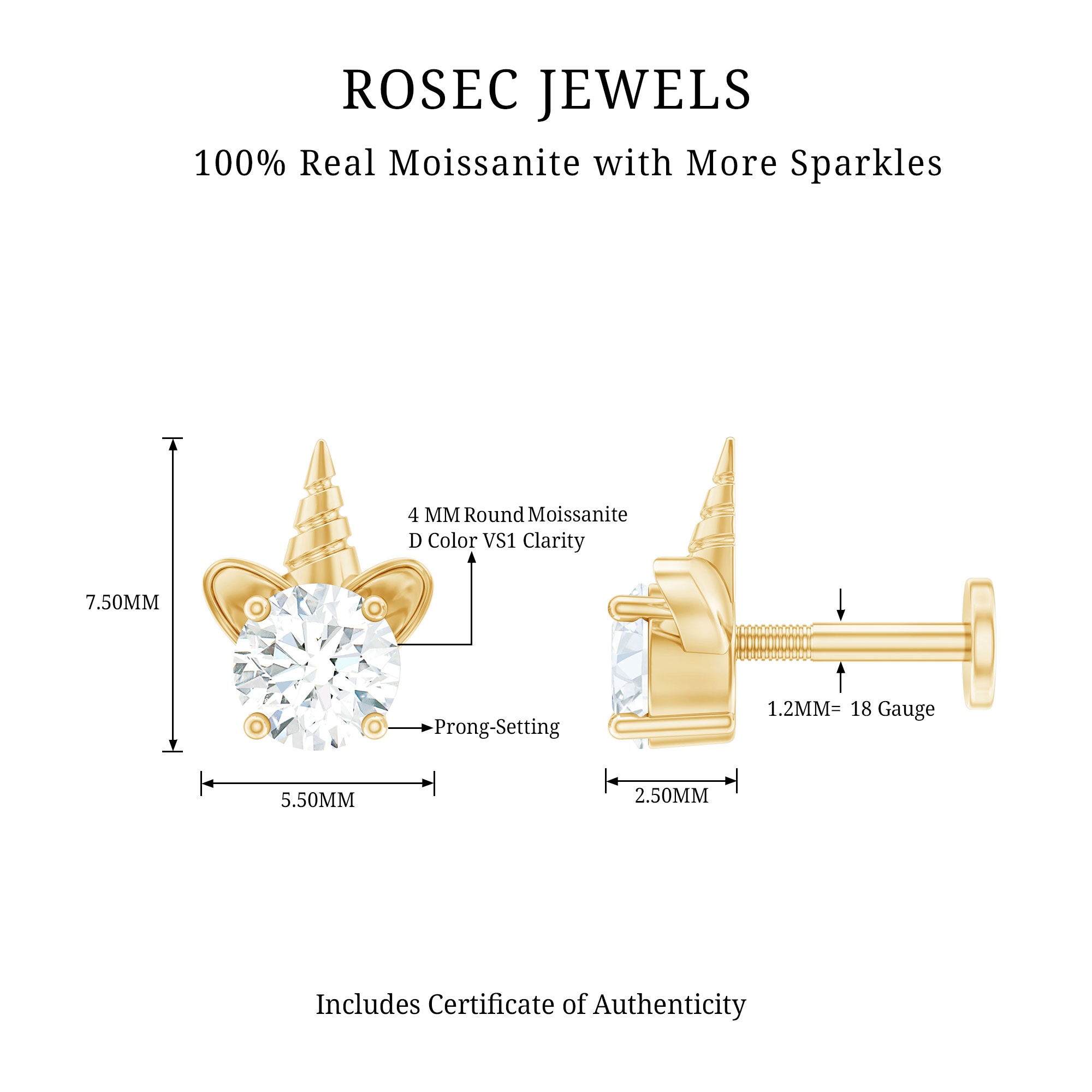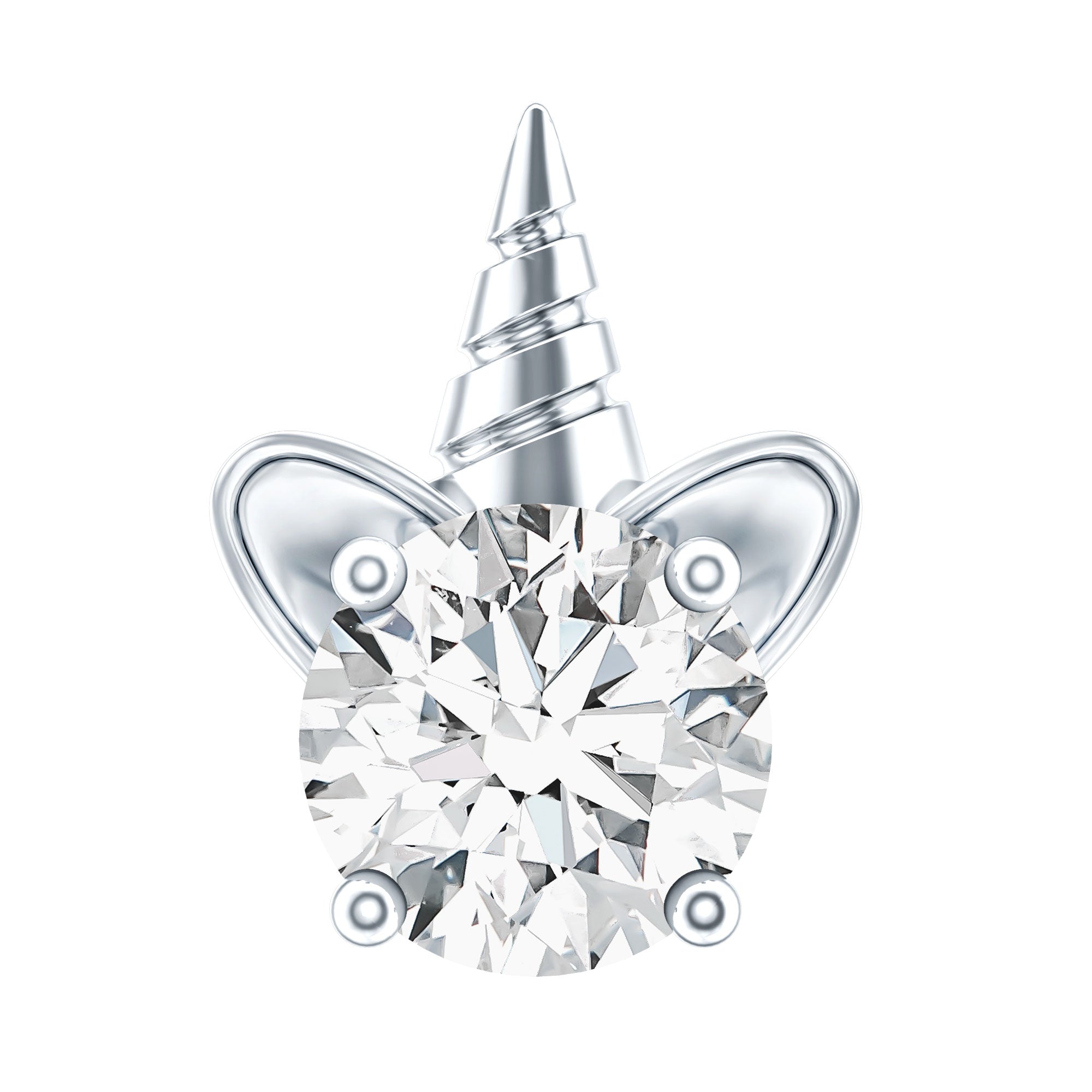 Add a touch of magic to your ear stack with this adorable Moissanite Helix Earring. Shaped with charming unicorn ears and a delicate horn, this piece brings a fun and fantasy-inspired vibe to your everyday jewelry. A brilliant 4MM round cut moissanite of D-VS1 quality is secured in a prong setting, catching the light beautifully and adding eye-catching shine. This versatile Unicorn Earring is made to be styled your way. It looks great on the helix, cartilage, tragus, conch, or upper lobe, making it easy to mix and match with other studs and hoops. Whether you are building a curated ear look or wearing it solo, this Animal Stud Earring adds personality and a little sparkle to any style. Crafted for comfort and daily wear, it features a flat back closure that sits comfortably against the skin and stays secure all day long. Durable, lightweight, and full of character, this Solitaire Moissanite Earring is perfect for anyone who enjoys whimsical jewelry with a modern twist and just the right amount of shine.
