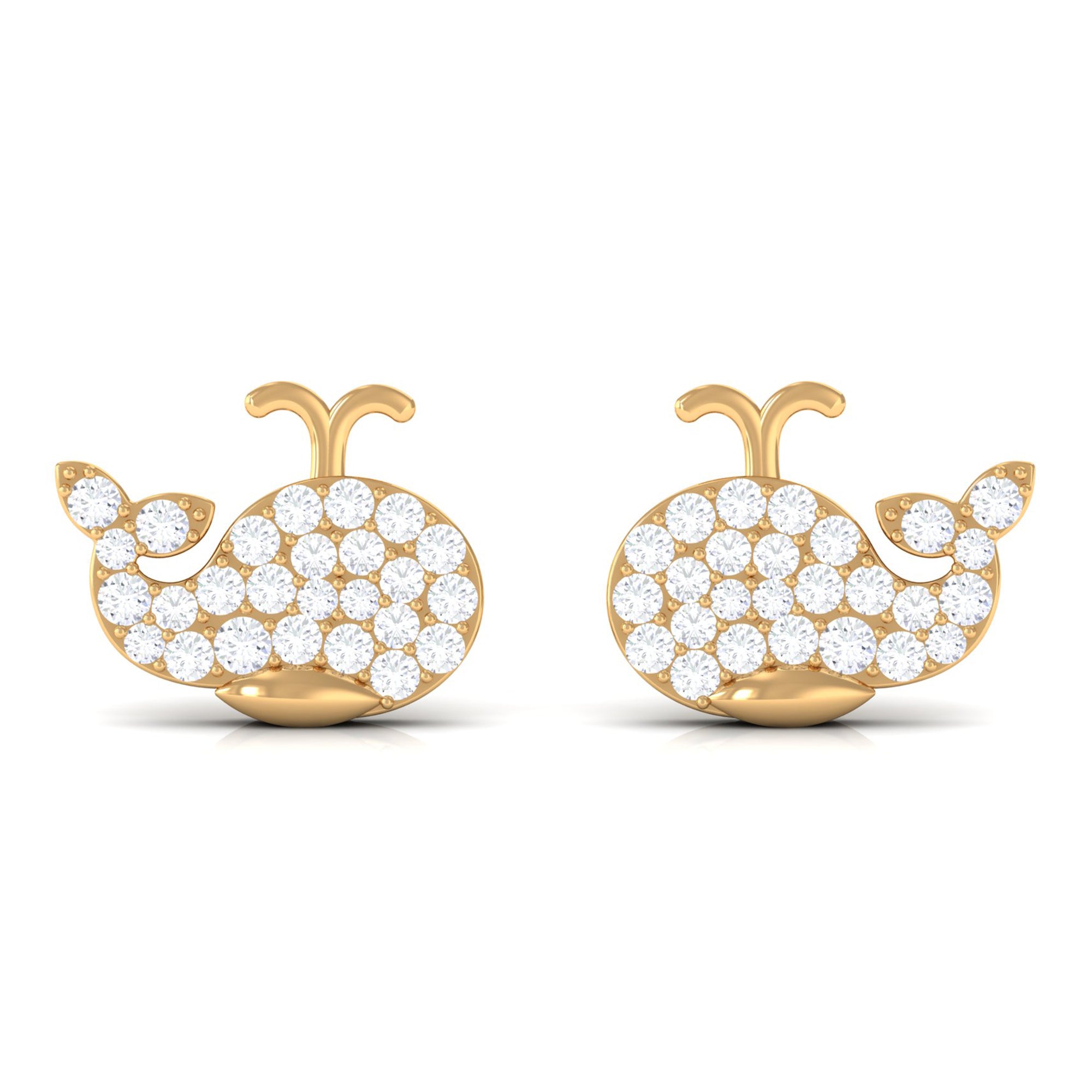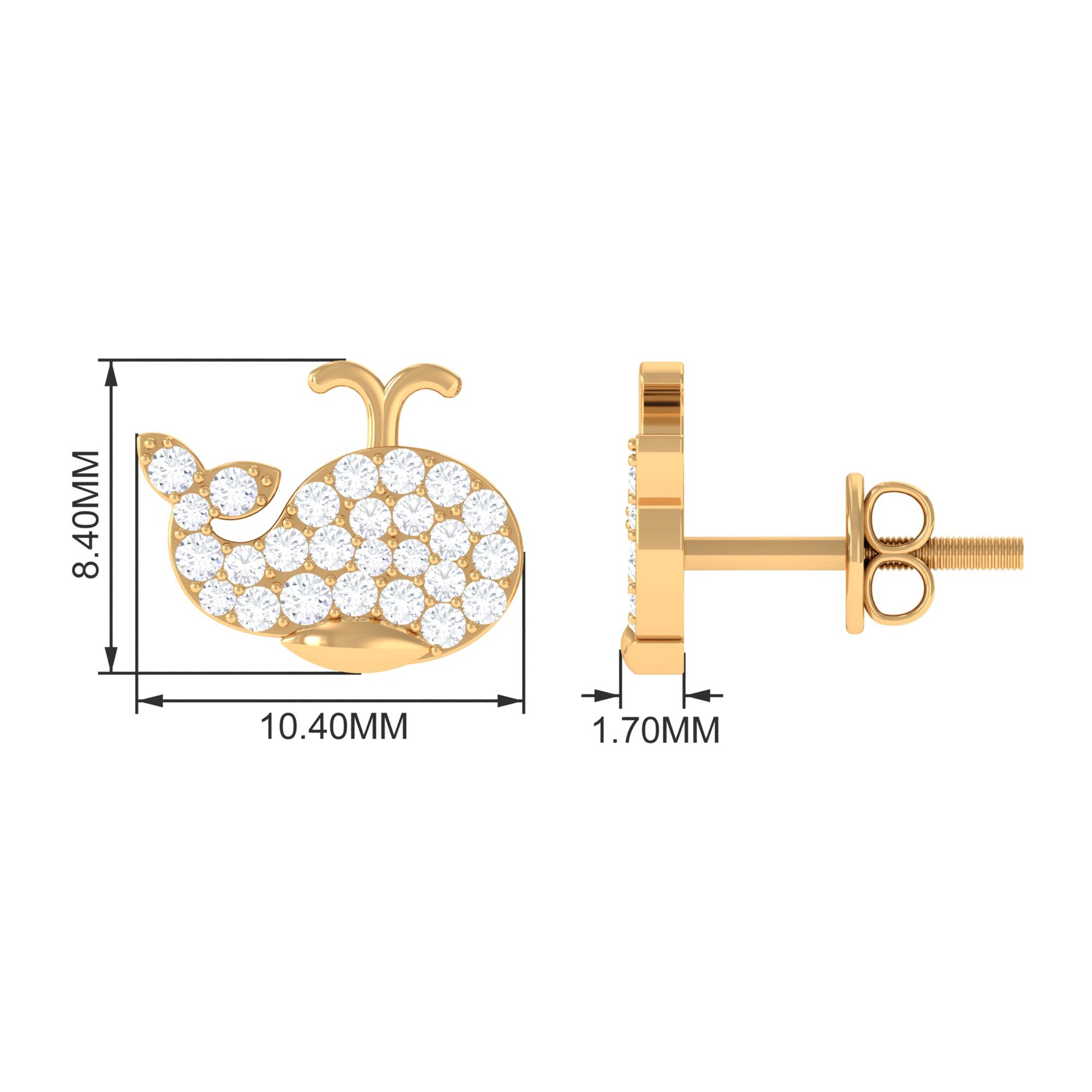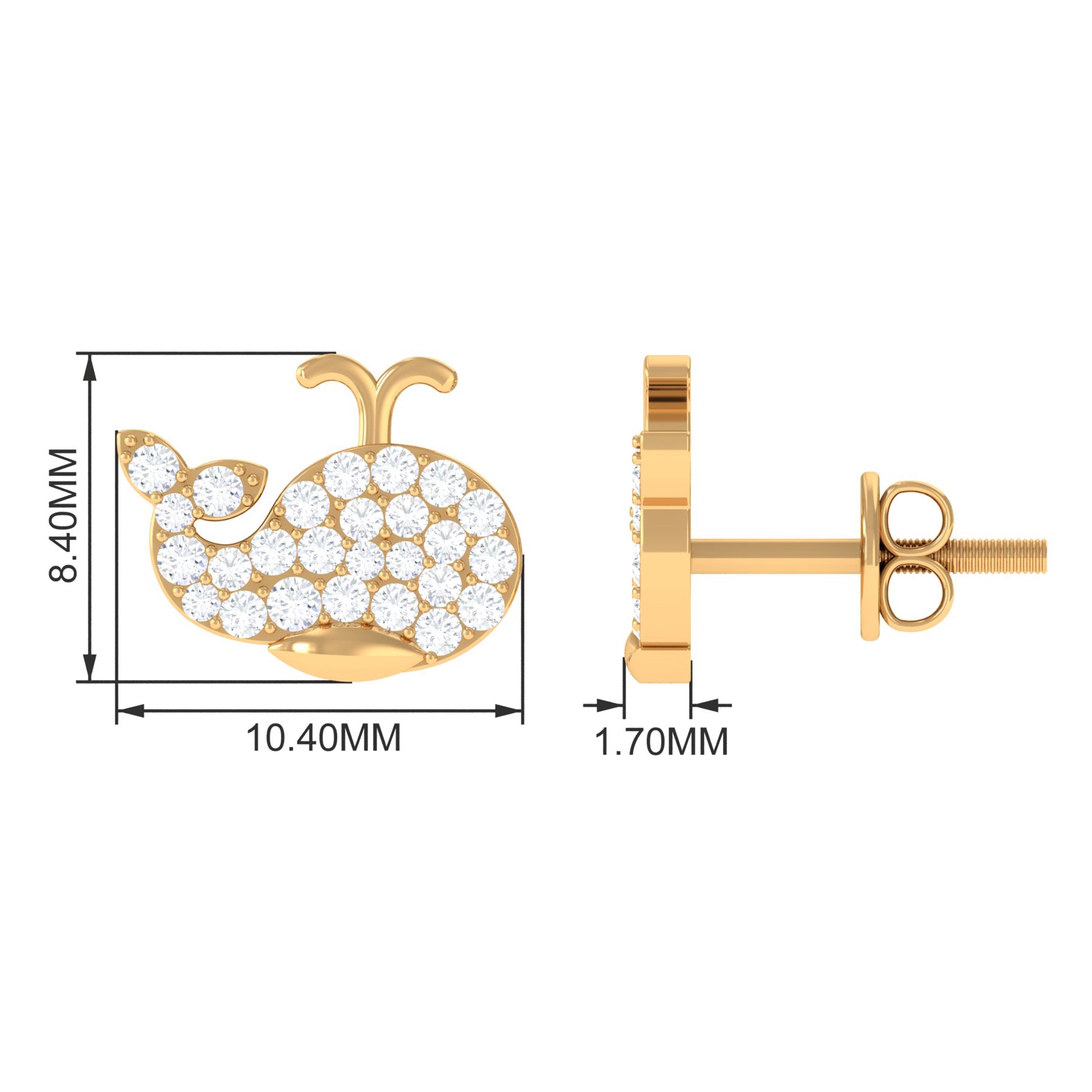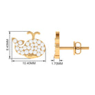 Cute Whale Gold Stud Earrings with Certified Moissanite