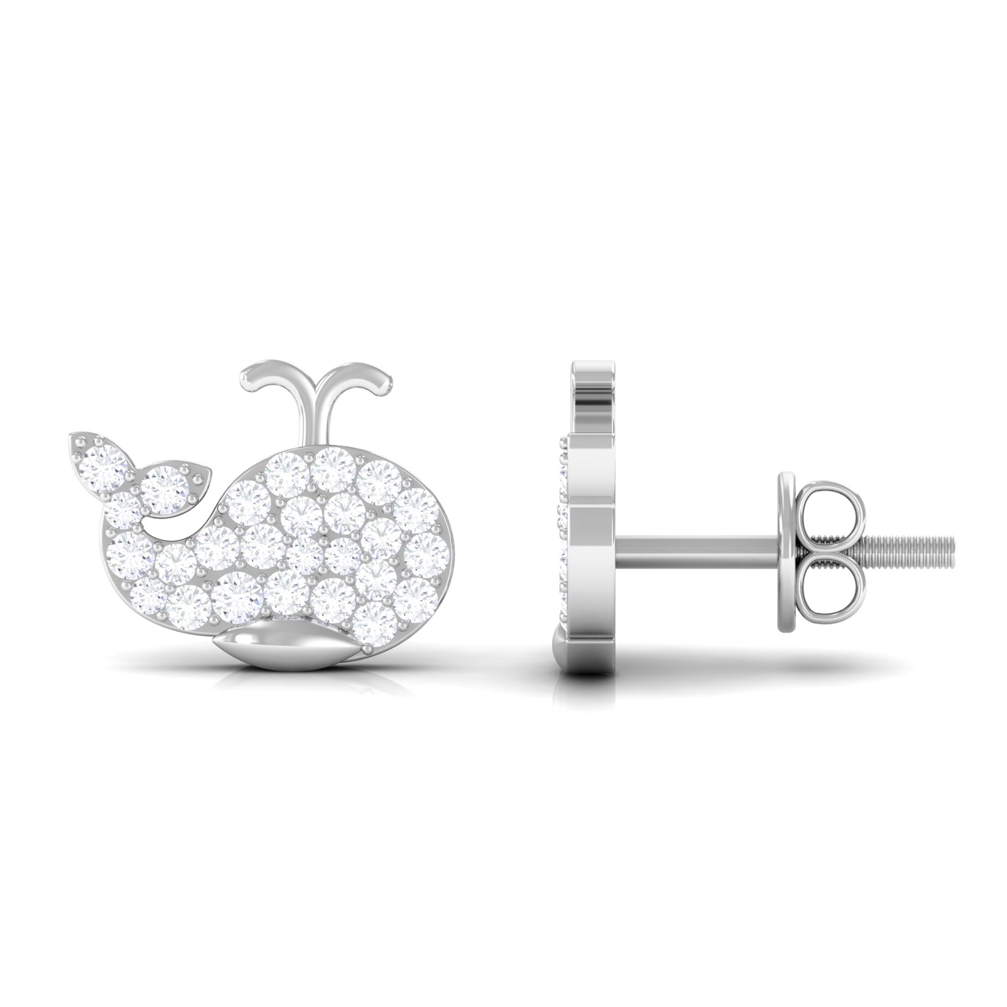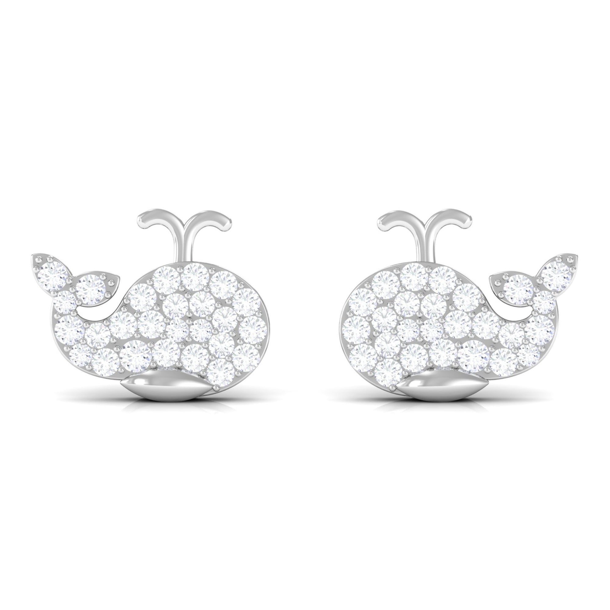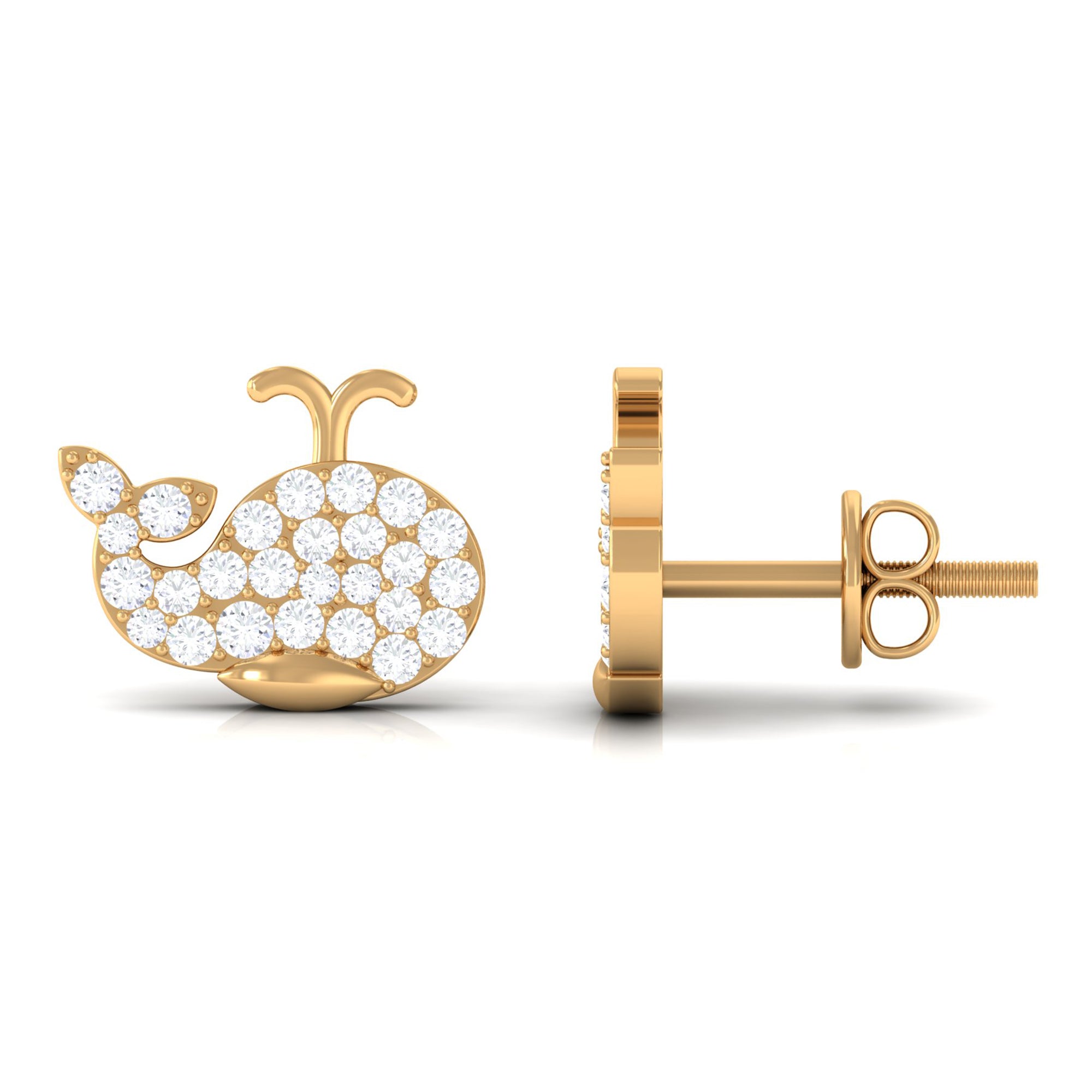 Cute Whale Gold Stud Earrings with Certified Moissanite