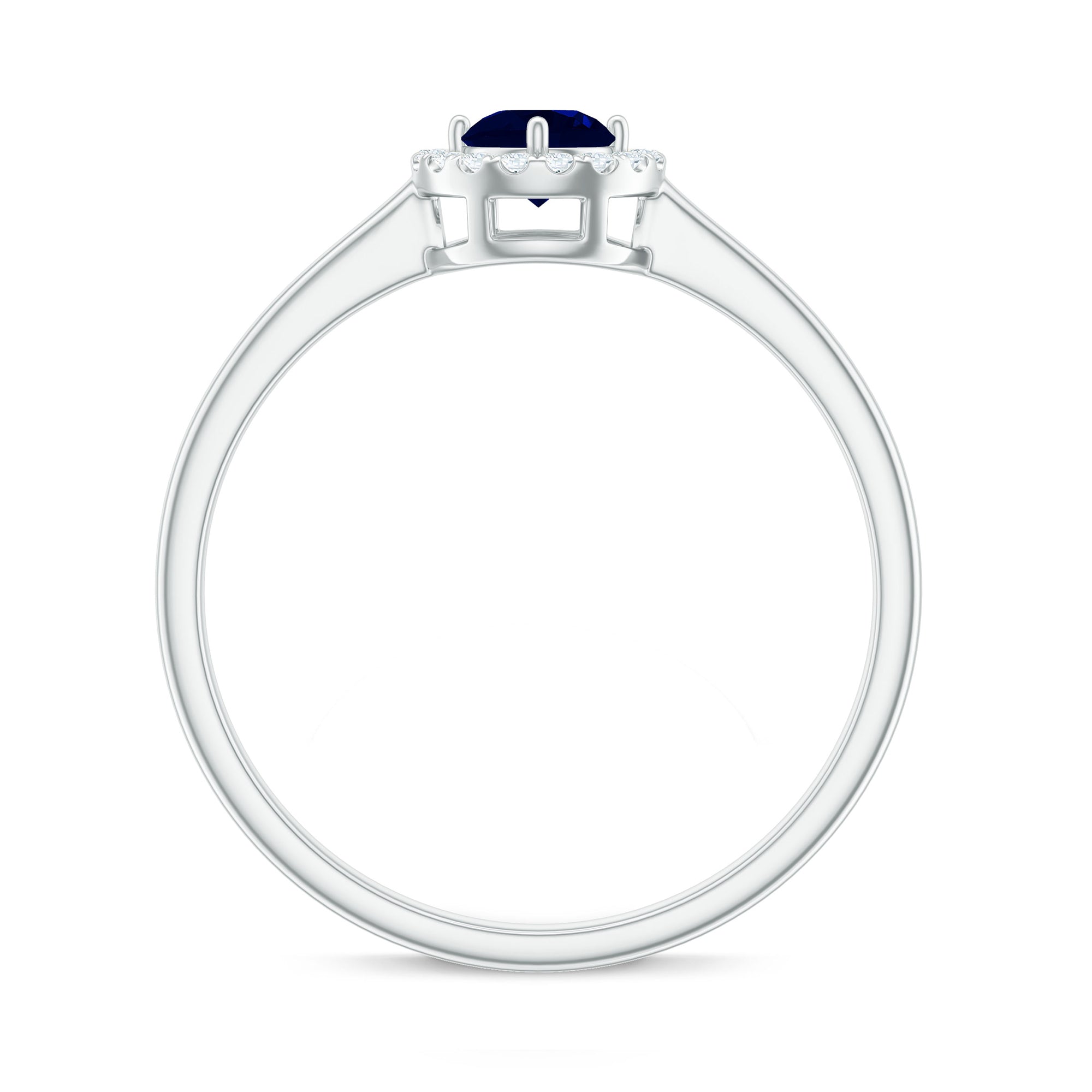 Dainty Blue Sapphire and Diamond Floating Halo Ring