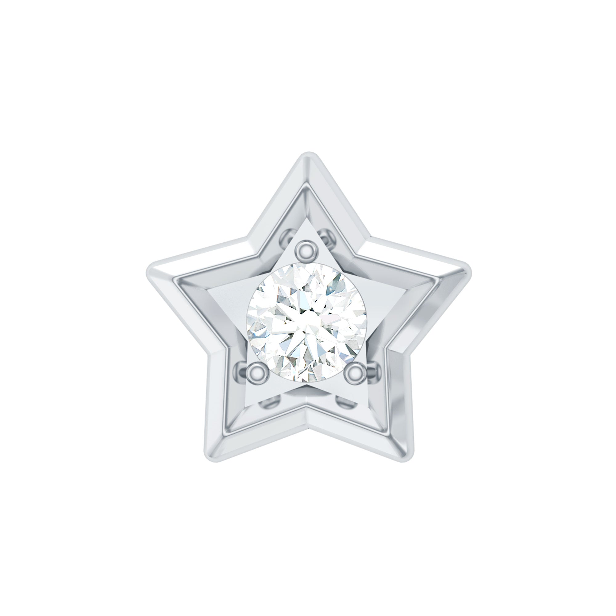 This Diamond Star Earring is crafted with solid gold metal, and features a round diamond solitaire on a star motif.