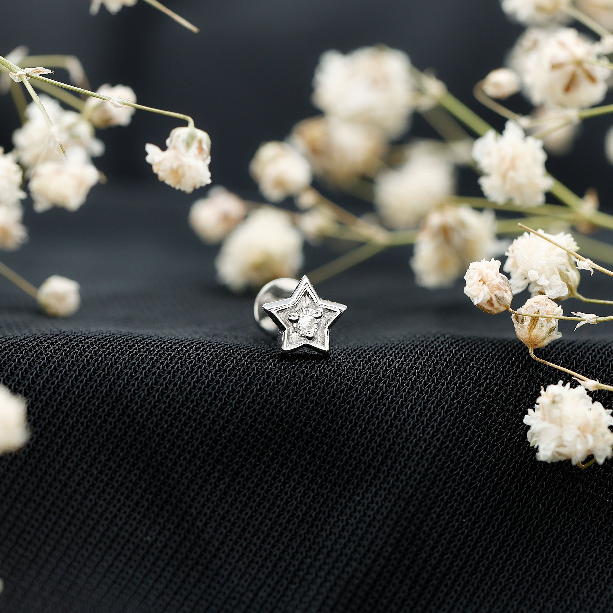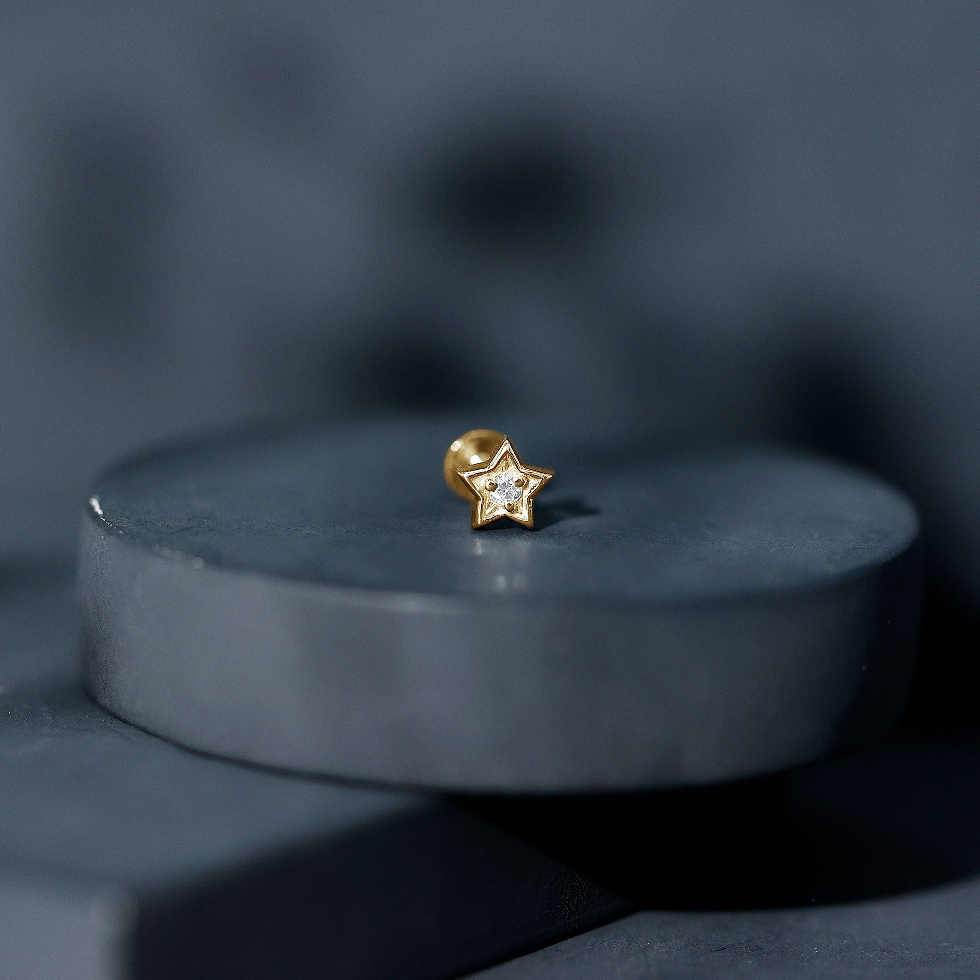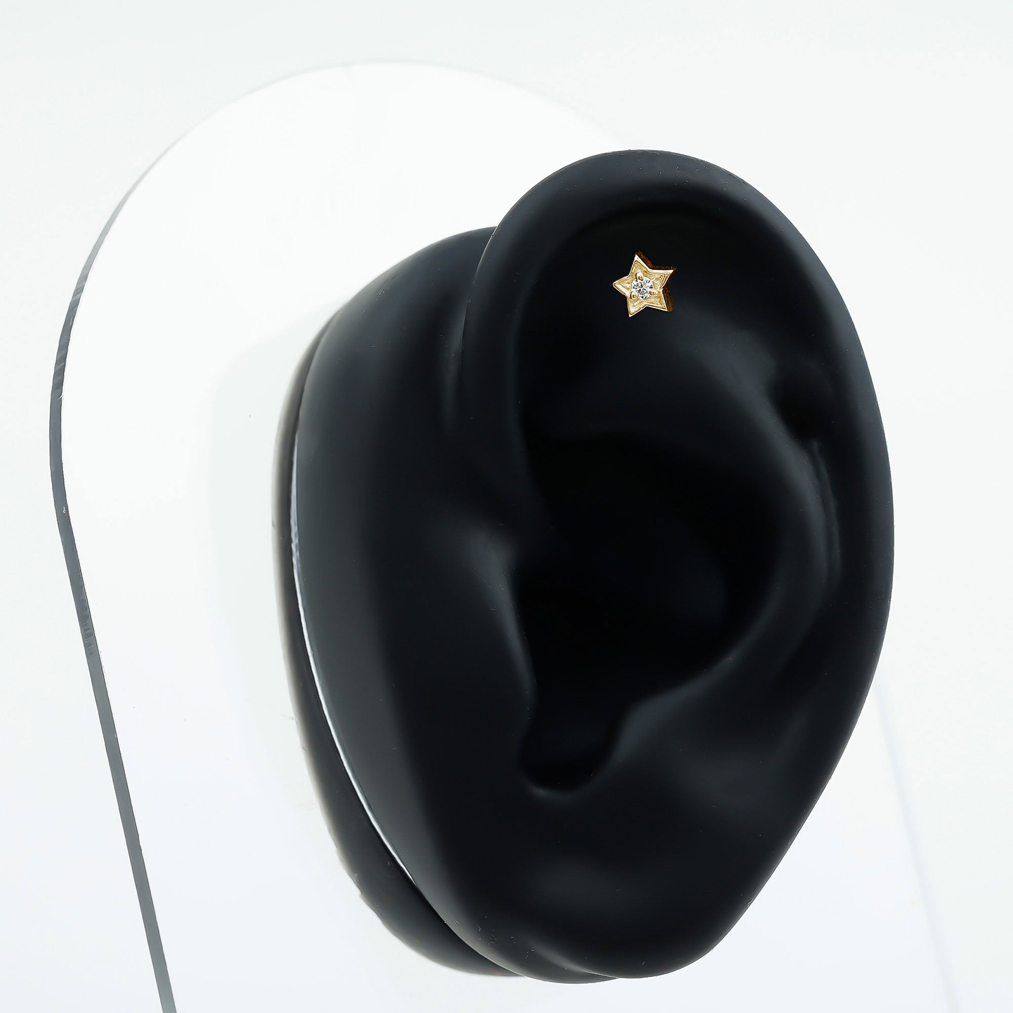 - Style this star celestial earring on your Helix, Cartilage, Tragus, Conch, or Upper Lobe Piercing. The flat back closure will keep it intact in place.