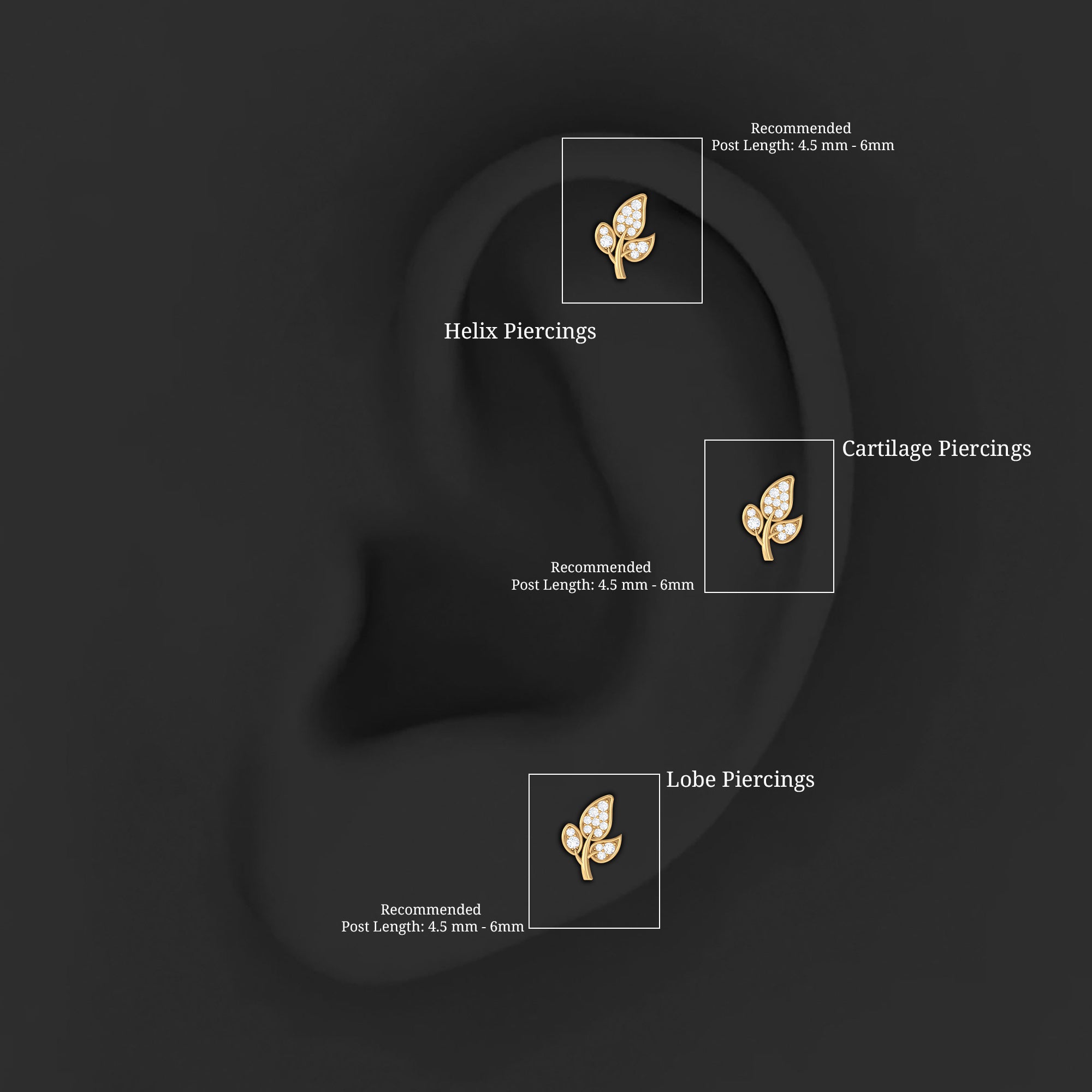 Dainty Moissanite Gold Leaf Earring for Cartilage Piercing