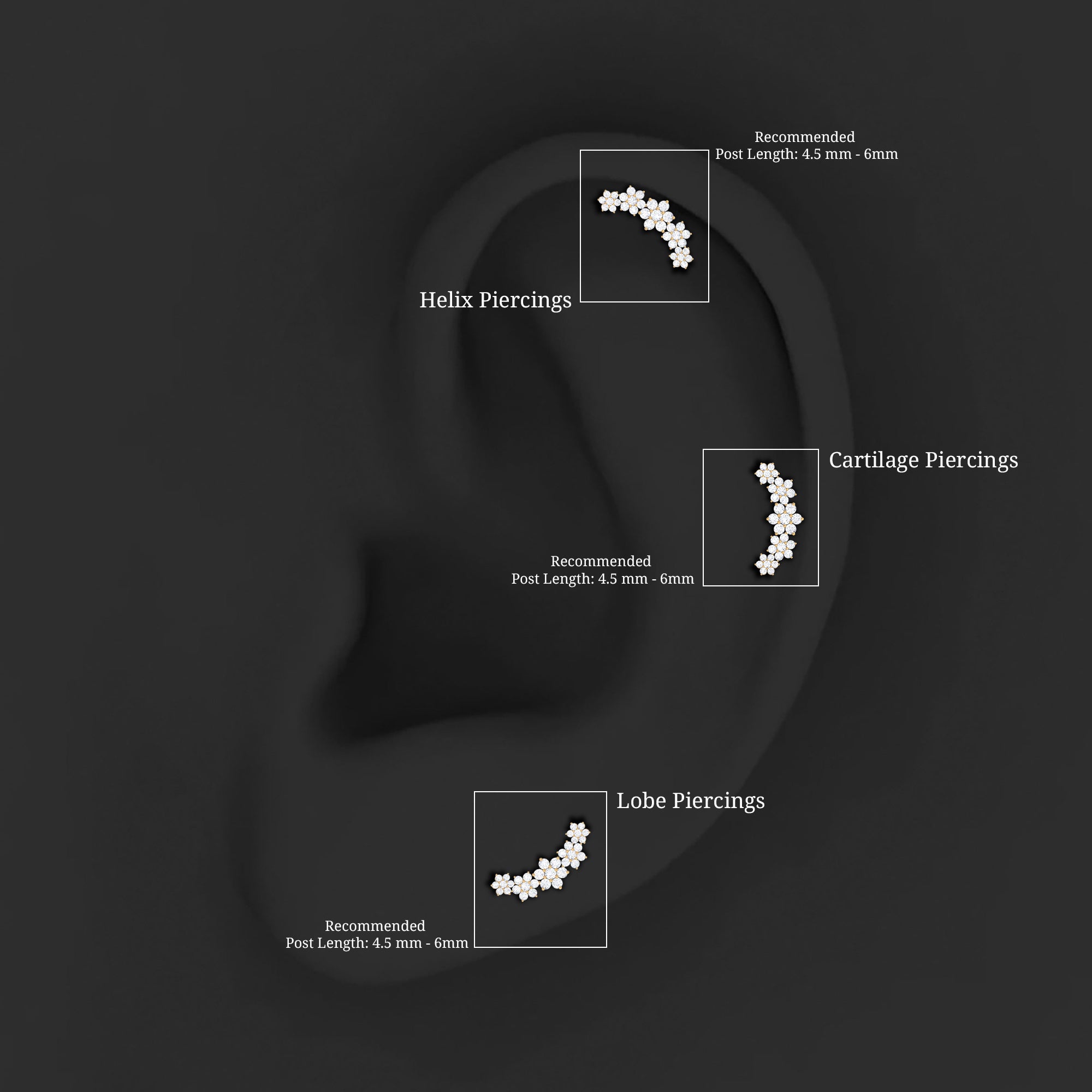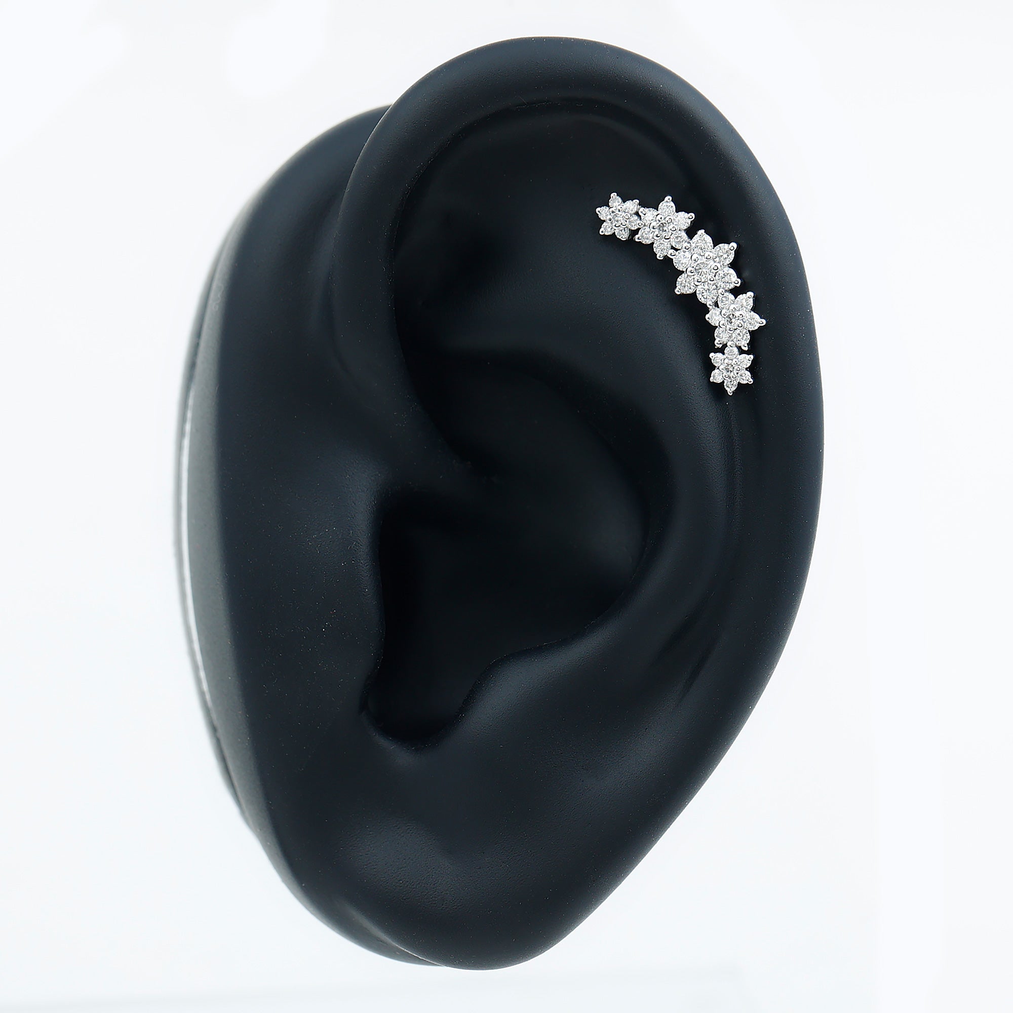 - You can simply adorn your helix, cartilage, or upper lobe piercing with this Flower Climber Earring. The flat back closure will keep it intact in place.