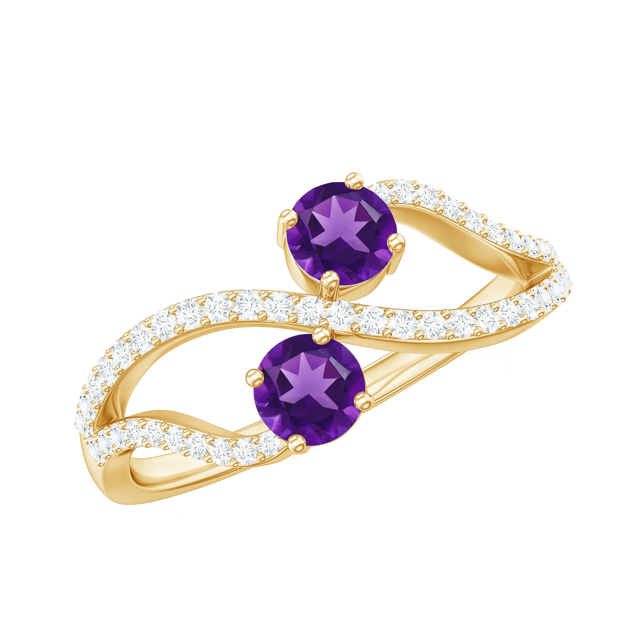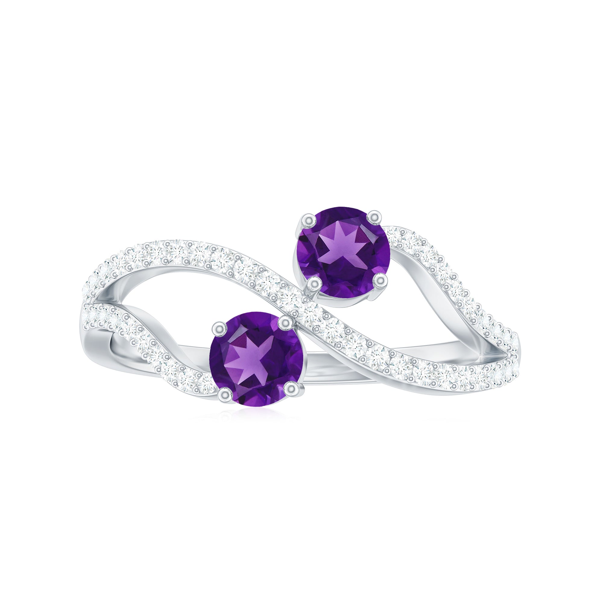 Radiate glamour with this Infinity Cocktail Ring, showcasing two Amethyst gemstones and Diamond gemstones. A symbol of eternal elegance and style.