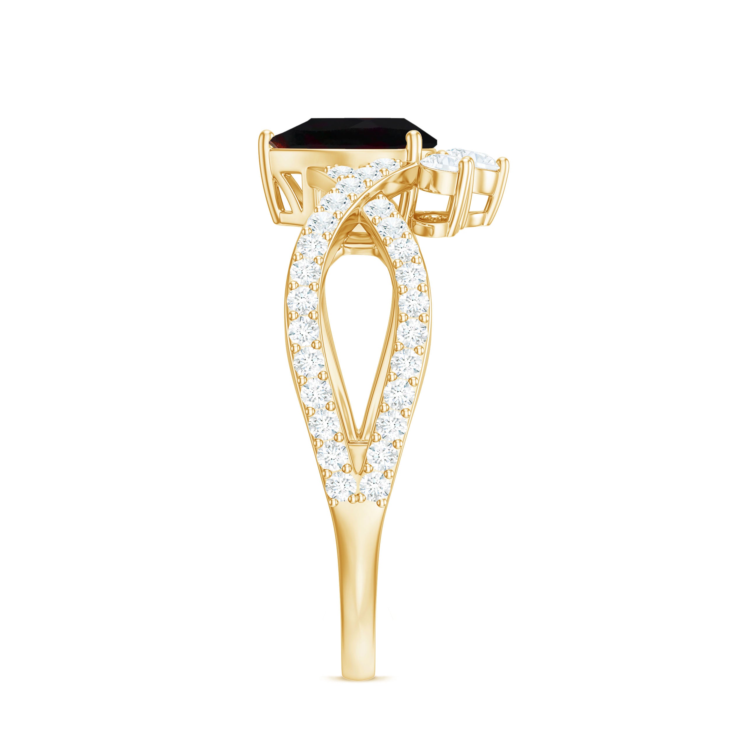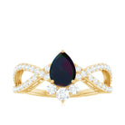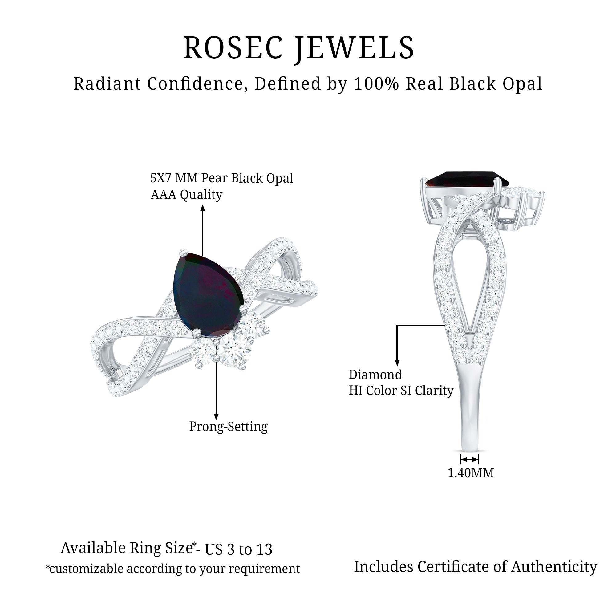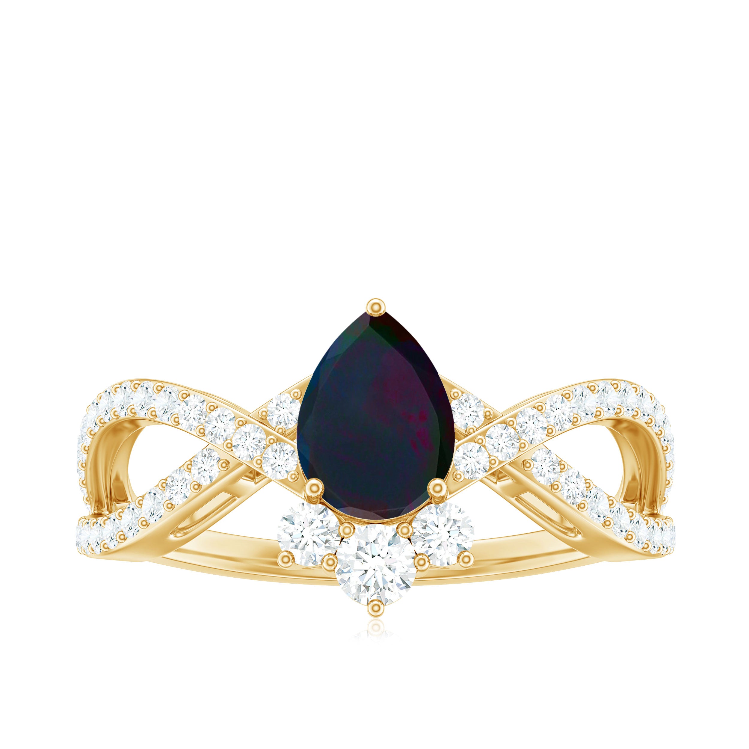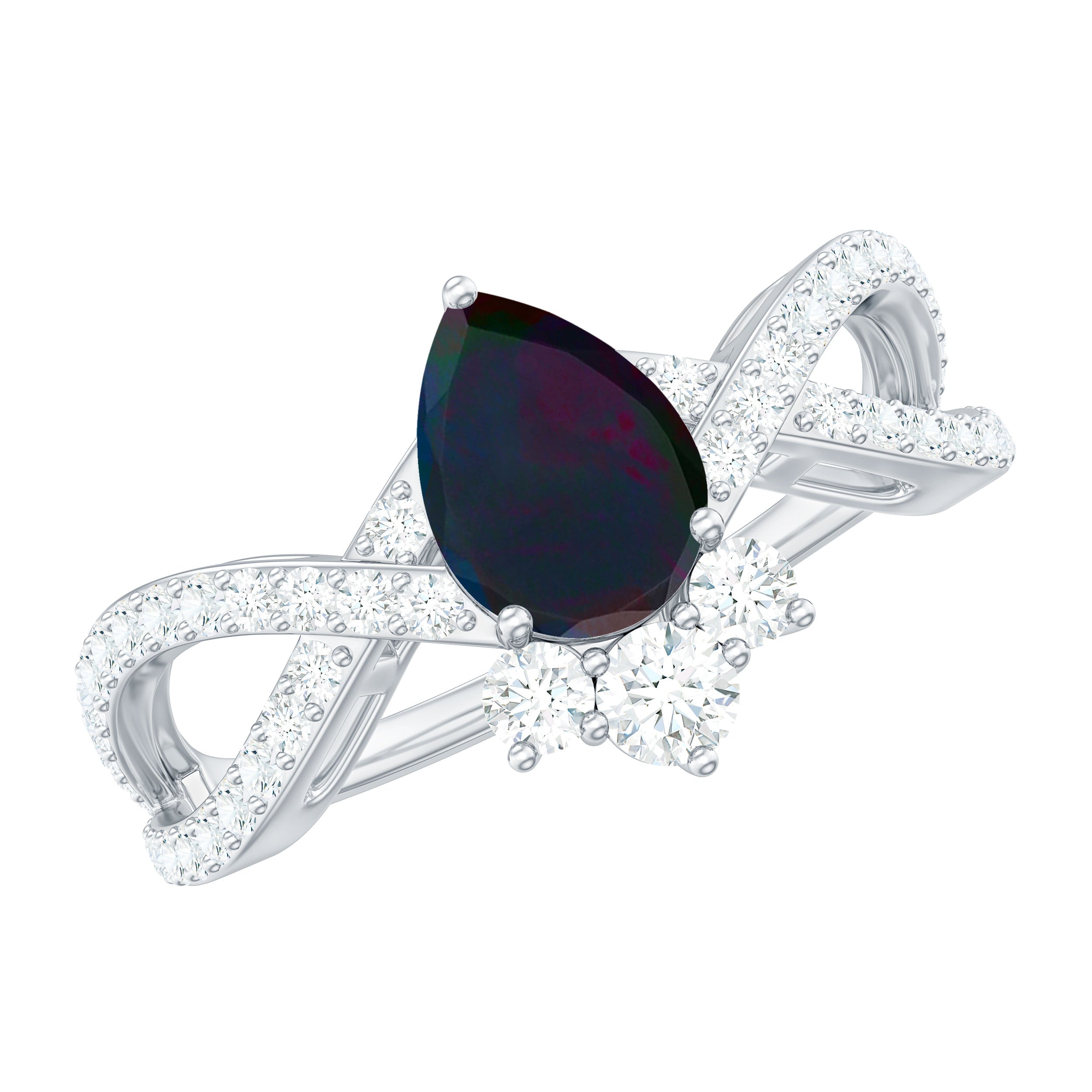 Designer Black Opal Teardrop Crossover Ring with Diamond