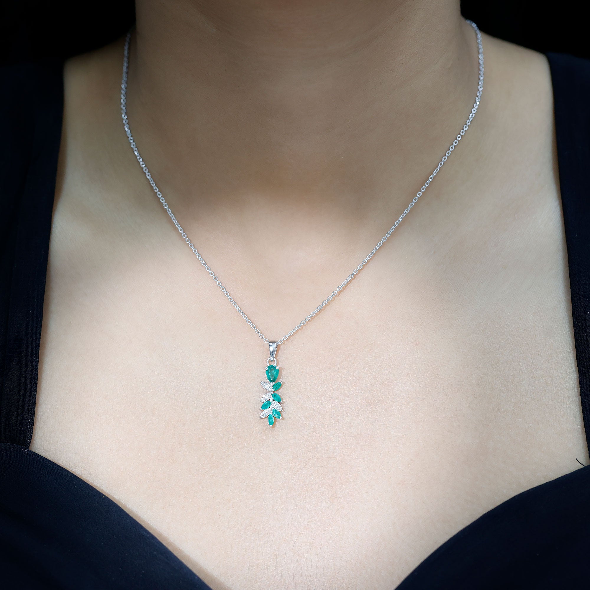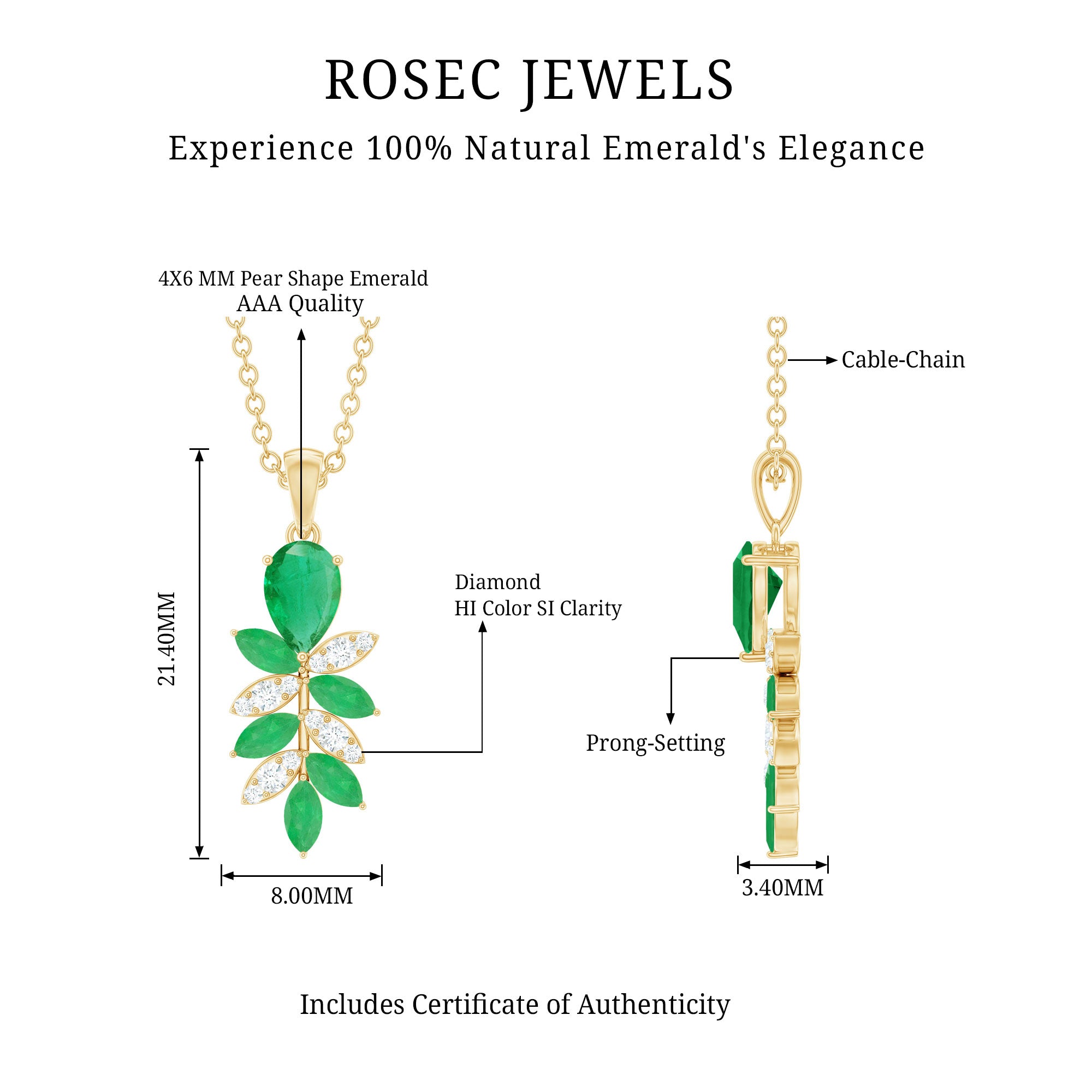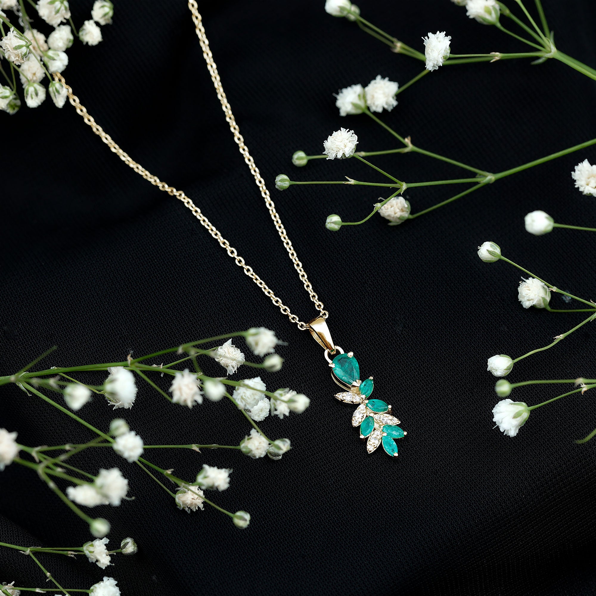 Get this Leaf Pendant Necklace for your loved ones as it is embellished with Marquise and Pear Cut Emerald while Round Shape Diamonds assembled in a Leaf Design. Flaunt this Emerald Pendant Necklace with your casual or dressy attires for a fascinating look. This Designer Pendant Necklace makes a fabulous present for your favorite person.