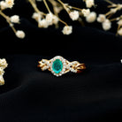 Designer Emerald Oval Engagement Ring with Diamond Halo