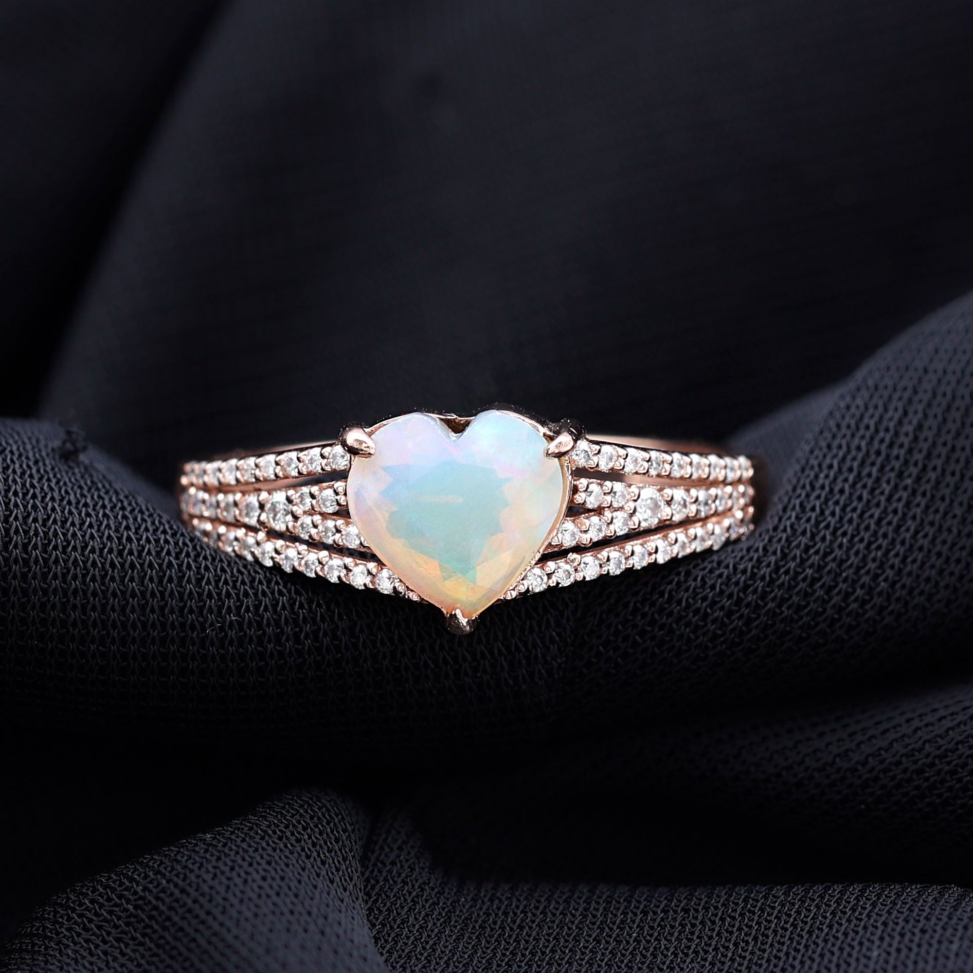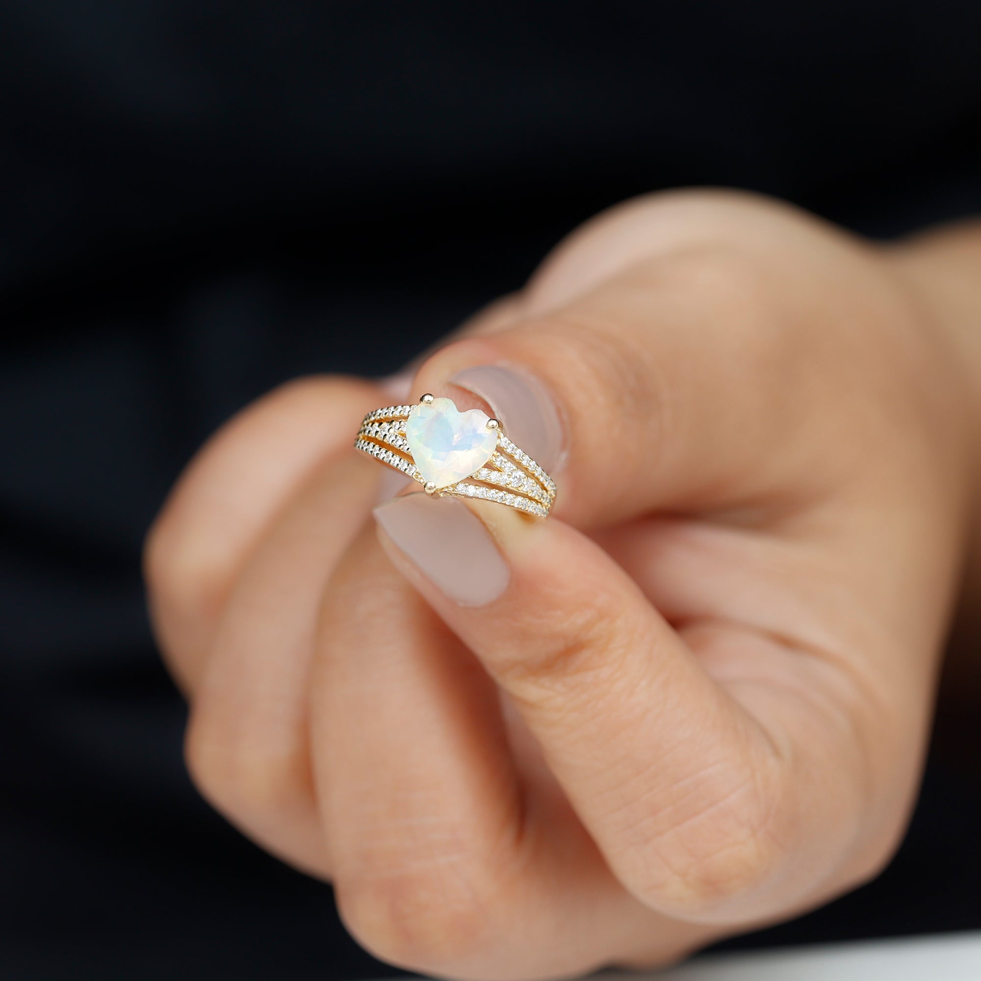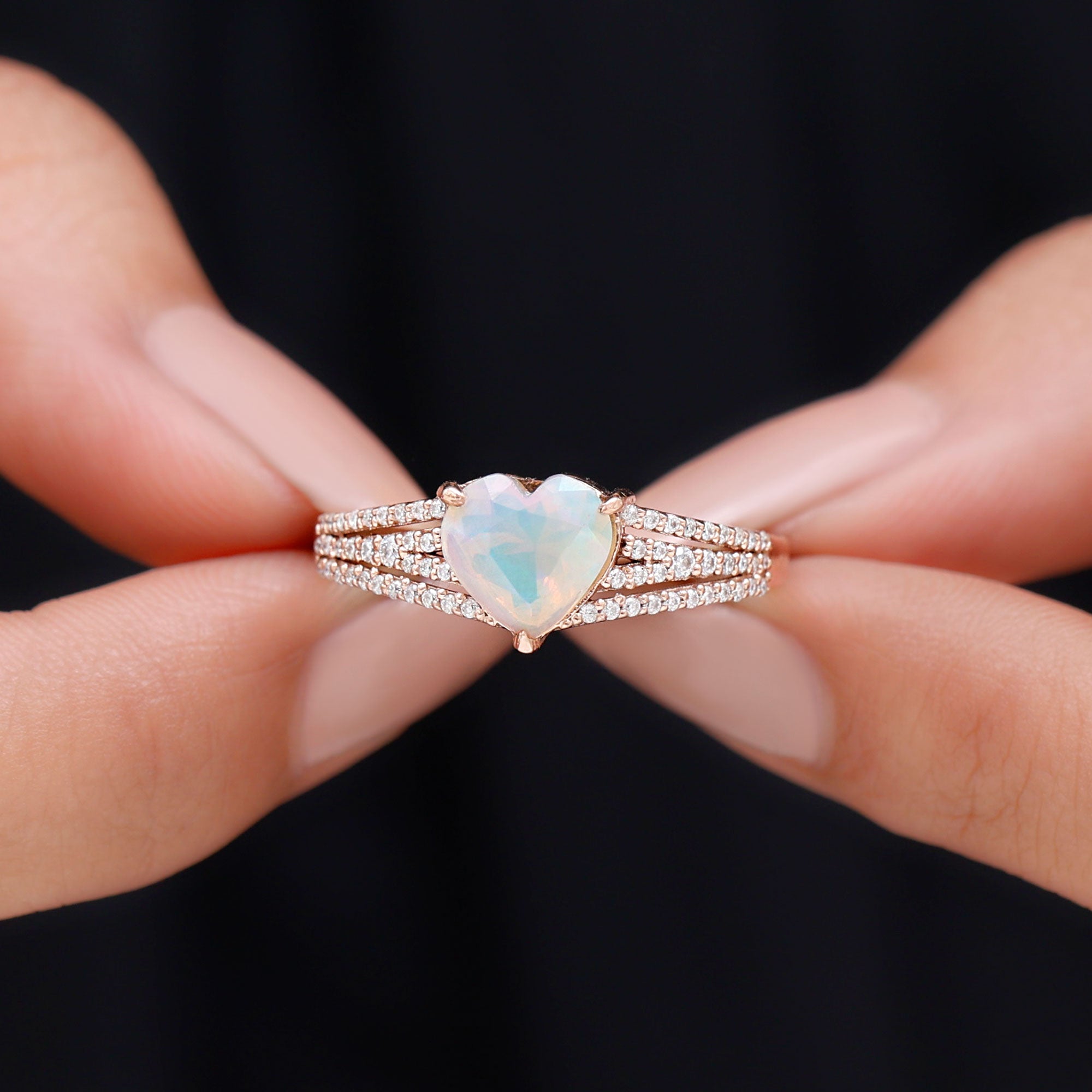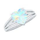 Designer Ethiopian Opal Heart Engagement Ring with Diamond Split Shank