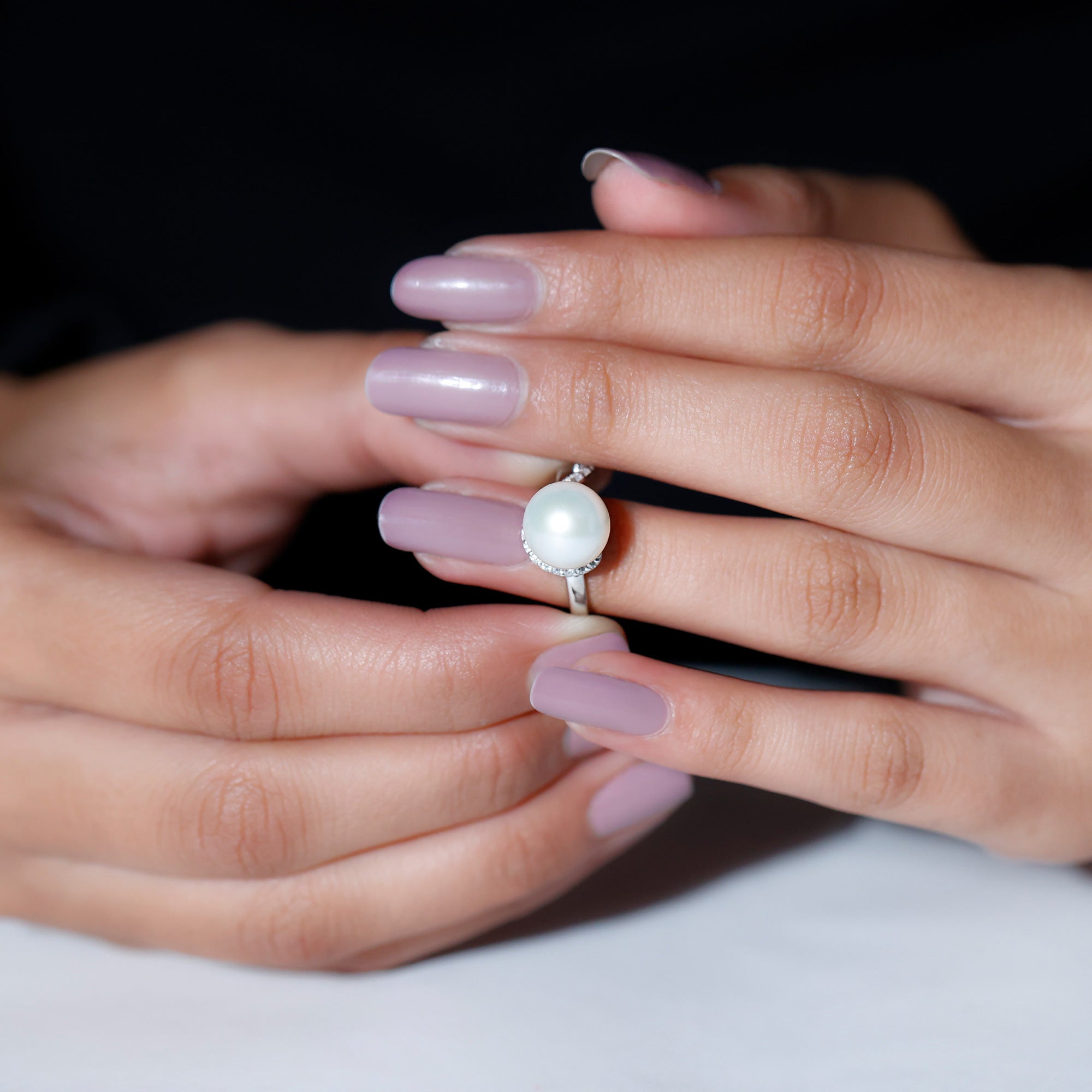 Designer Freshwater Pearl Solitaire Engagement Ring with Moissanite Accent