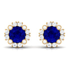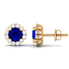 Designer Lab Created Blue Sapphire and Diamond Halo Stud Earrings