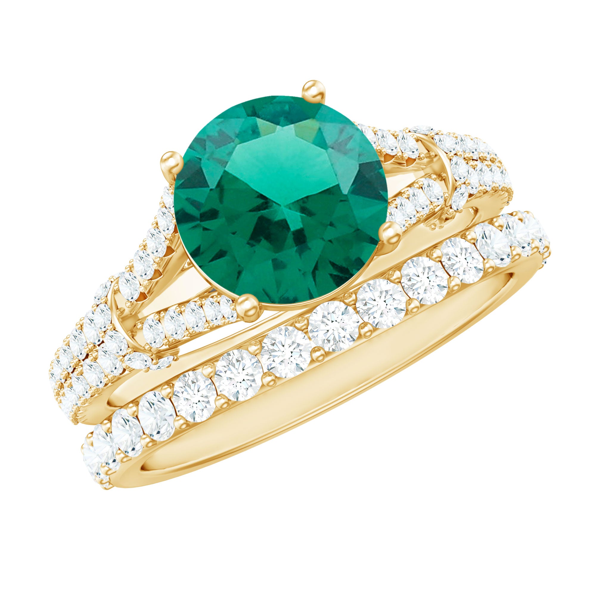 Designer Lab Grown Emerald Engagement Ring with Wedding Band