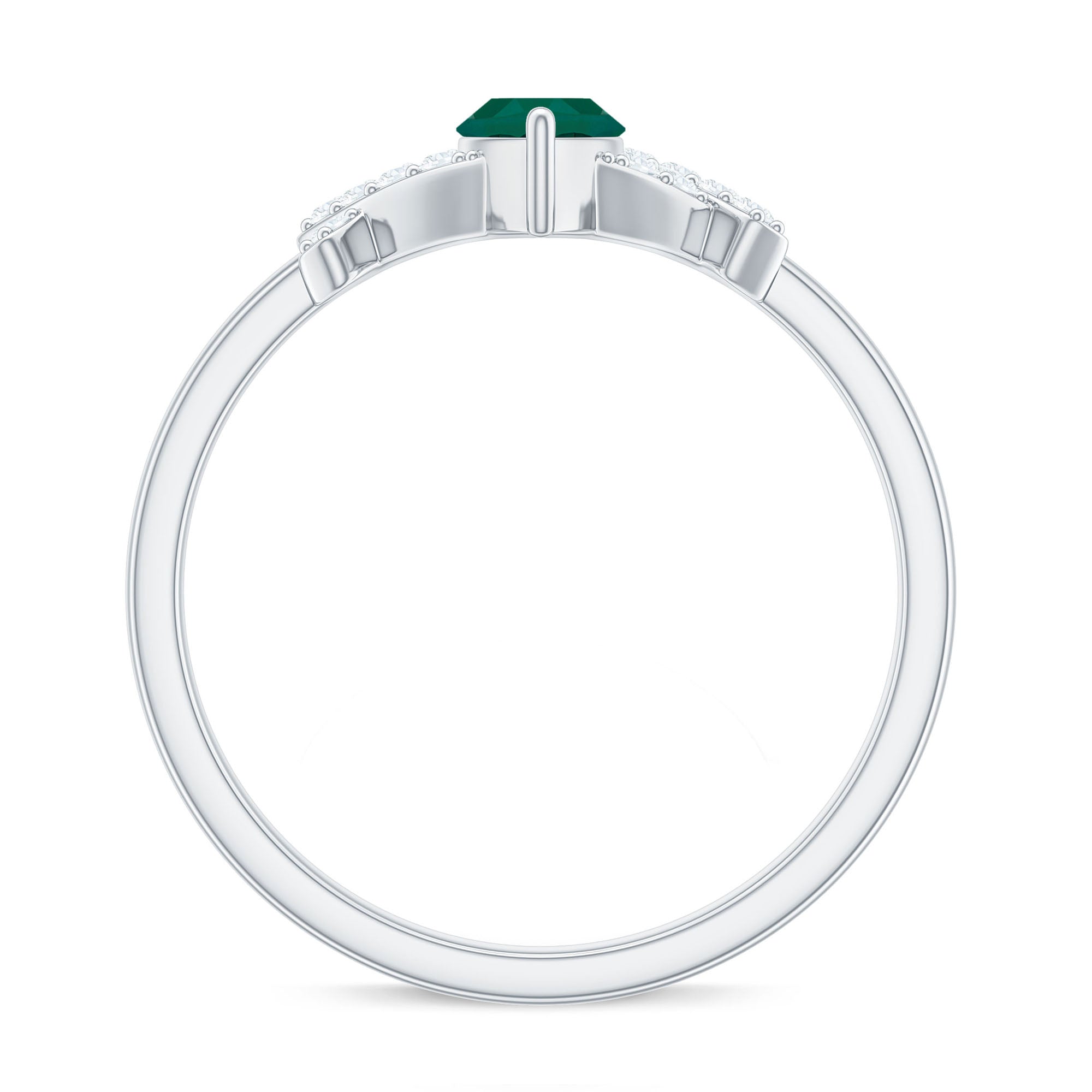 Turn moments into memories with this Designer Engagement Ring, a perfect blend of sophistication and meaningful design. This Fine Ring features a stunning 4X8 mm Marquise Shape Lab Created Emerald, renowned for its elongated shape and vibrant green color. The Marquise Shape makes this Lab Grown Emerald Ring stand out with a graceful and elegant presence. What makes this Marquise Engagement Ring truly special is the mesmerizing design around the center stone. Both sides of the band are beautifully decorated with sparkling Diamond stones studded over the mesmerizing design that adds extra brilliance to the overall look. The artistic design brings a touch of modern and luxurious appeal that makes this Lab Emerald Diamond Engagement Ring a unique choice for someone who values elegance. This Lab Emerald Engagement Ring is perfect for making a bold statement during proposals or celebrating a meaningful milestone. This Marquise Emerald Ring is a timeless piece she will treasure forever.