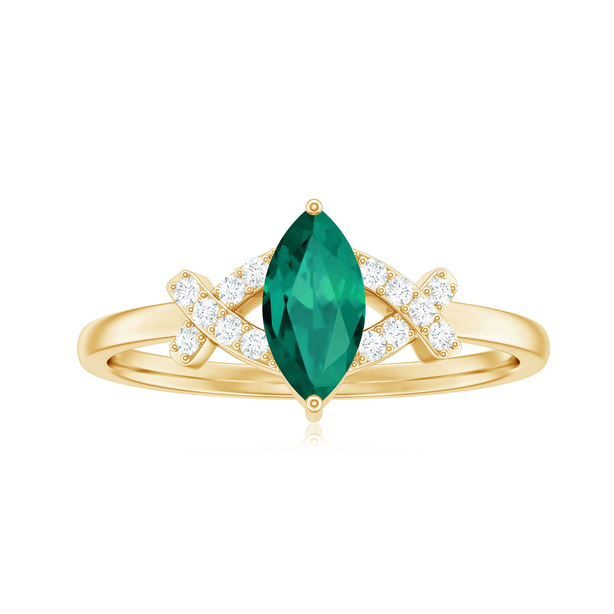 Designer Lab Grown Emerald Marquise Engagement Ring with Diamond