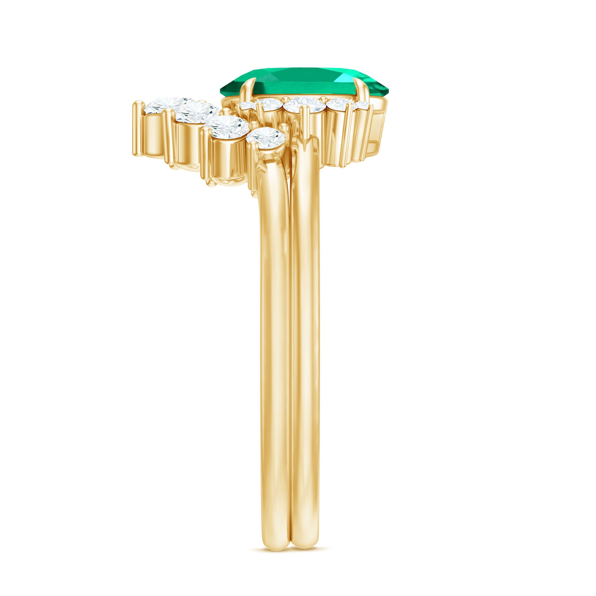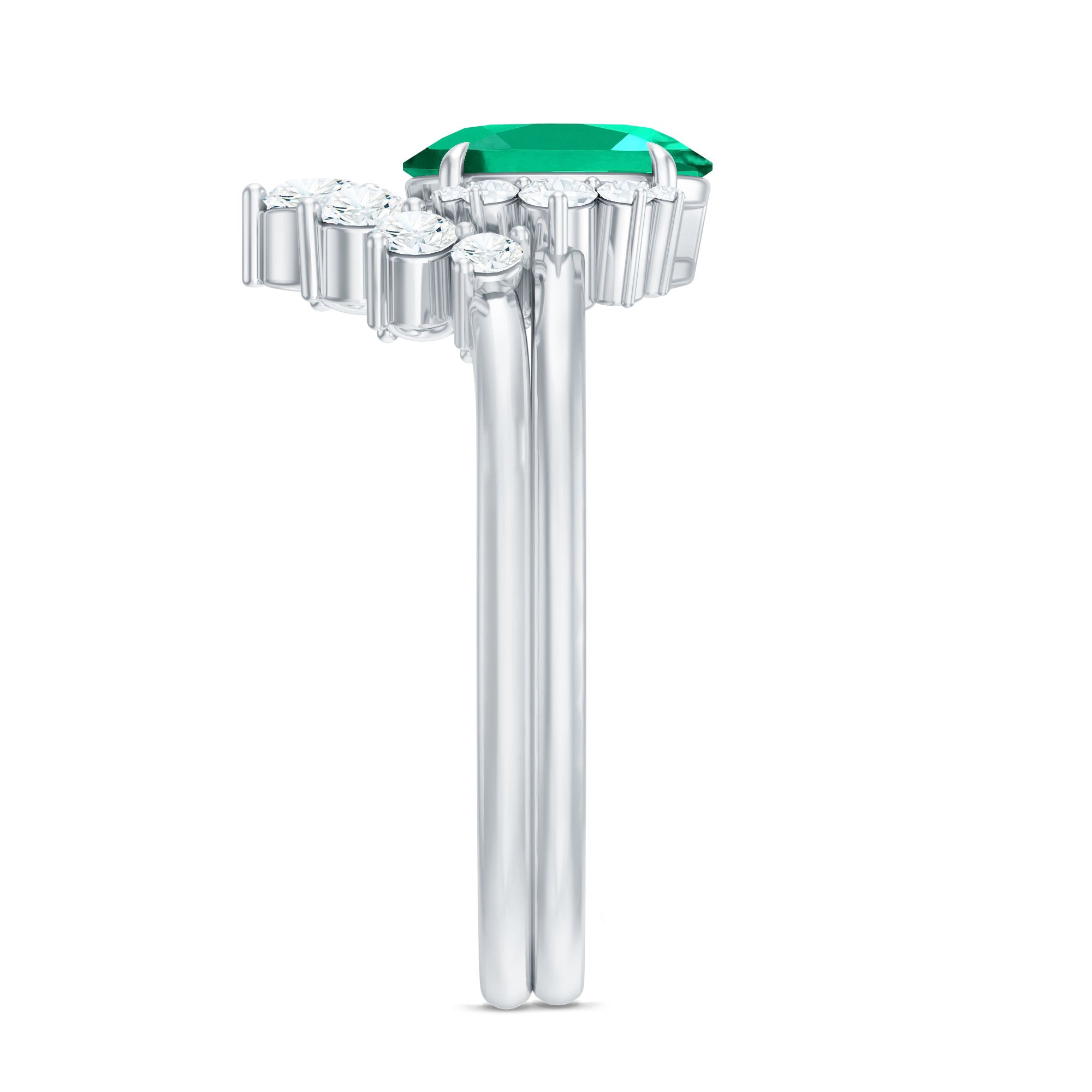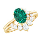 Designer Lab Grown Emerald Oval Engagement Ring with Diamond Enhancer