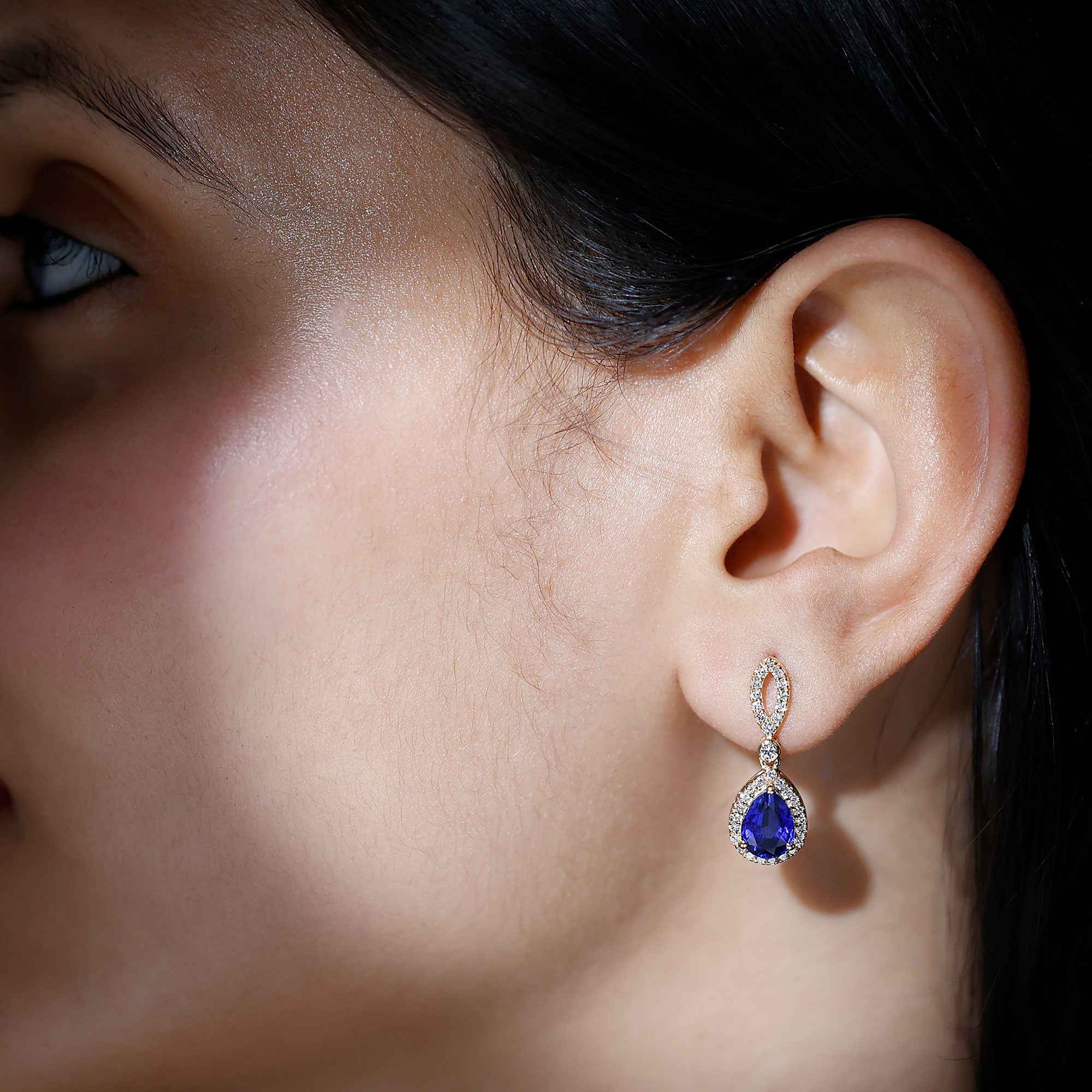 Enhance your style effortlessly with our unique Designer Lab Grown Sapphire Earrings. The intriguing design showcases a Prong Set Lab Grown 6x8mm Pear Shaped Blue Sapphire adorned with Round Lab Grown Diamond, adding a touch of sophistication to complement your ears. These Designer Earrings are versatile, perfect for both casual and evening attire, and are bound to earn you compliments every time you wear them. These earrings are adorned with Aaaa Quality Sapphire and Ef-Vs Quality Diamonds. These earrings can be worn solo or stacked with your other favorite pieces, these Sapphire Diamond Earrings allows you to create statement looks with ease. Surprise your partner with these Drop Earrings as a heart melting gift, expressing just how much they mean to you.