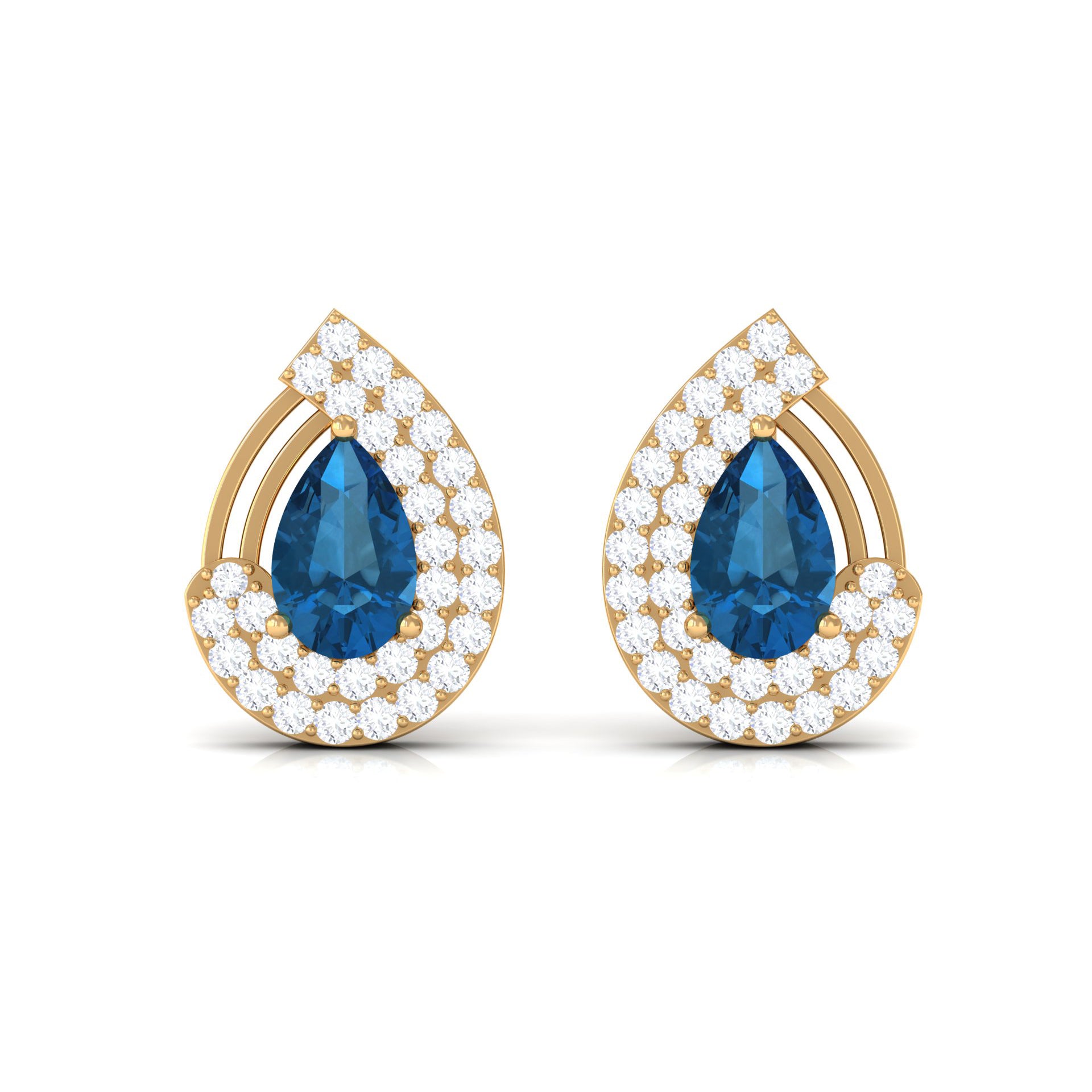 Designer London Blue Topaz and Diamond Teardrop Stud Earrings