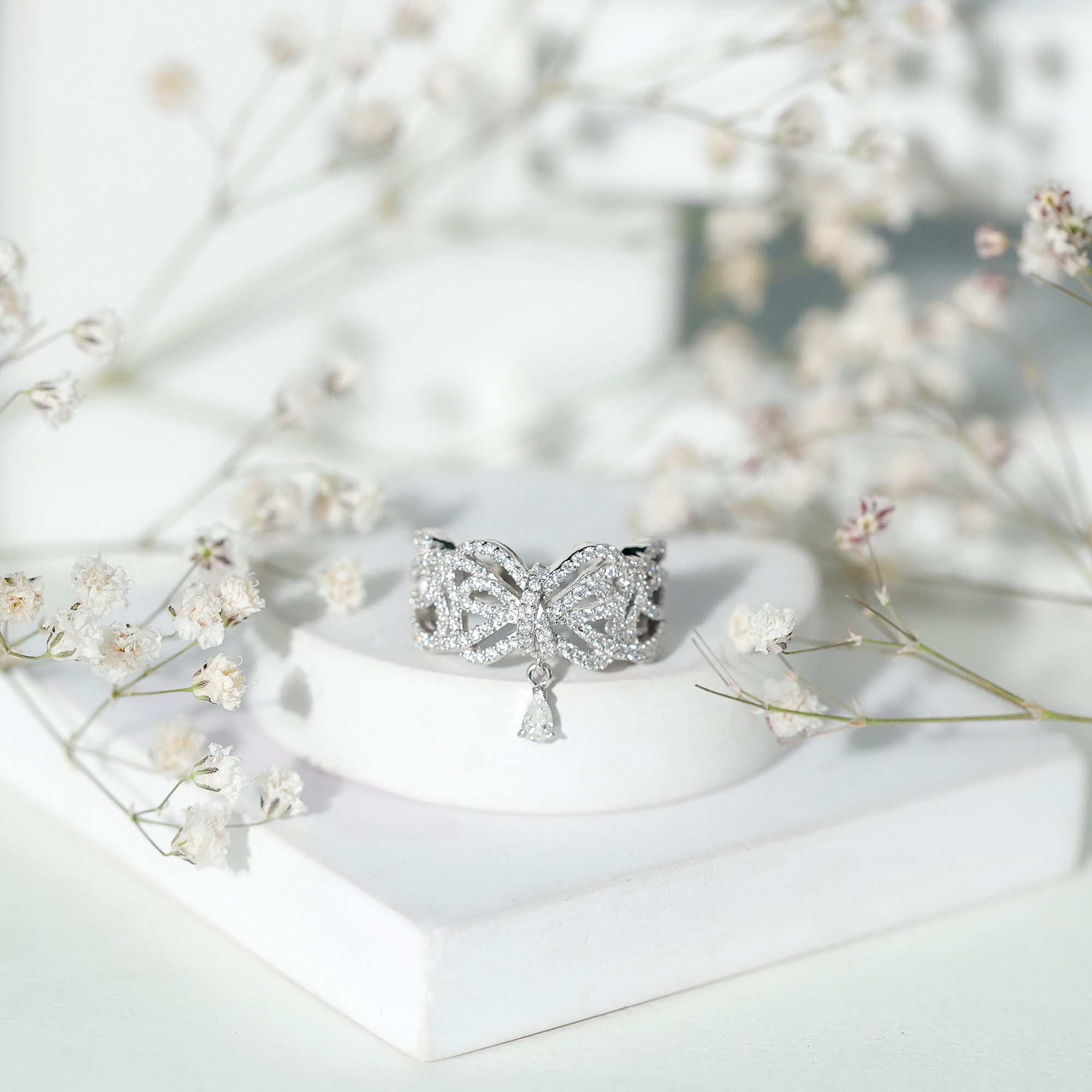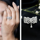Designer Moissanite Bow Engagement Ring in 14K Gold Plated Silver