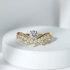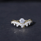 Step into forever with elegance and intention through this stunning Moissanite Engagement Ring. Thoughtfully crafted for the modern bride, this Designer Engagement Ring features a graceful Curved Band that gently embraces a dazzling 5 MM Round Shape Moissanite. Set in Prong Setting and accentuated with petite, shimmering stones, this ring delivers brilliance with every glance. The Moissanite stones are Certified with D-VS1 quality, promising exceptional color and clarity for a luminous finish that rivals traditional diamonds. More than just a piece of fine jewelry, this Curved Moissanite Ring represents a connection that is both meaningful and enduring. Its curved design is more than an aesthetic - it symbolizes unity, movement, and the natural flow of love. Perfectly suited for brides who appreciate both timeless beauty and modern sensibilities, this ring is a true reflection of individual style and heartfelt commitment. Every detail, from the stone placement to the smooth curvature, is designed to highlight the uniqueness of your journey. Whether it marks a proposal, a promise, or a personal milestone, this Curved Engagement Ring radiates with purpose and sophistication. This beauty is more than jewelry, it is a beautifully sculpted memory in the making.