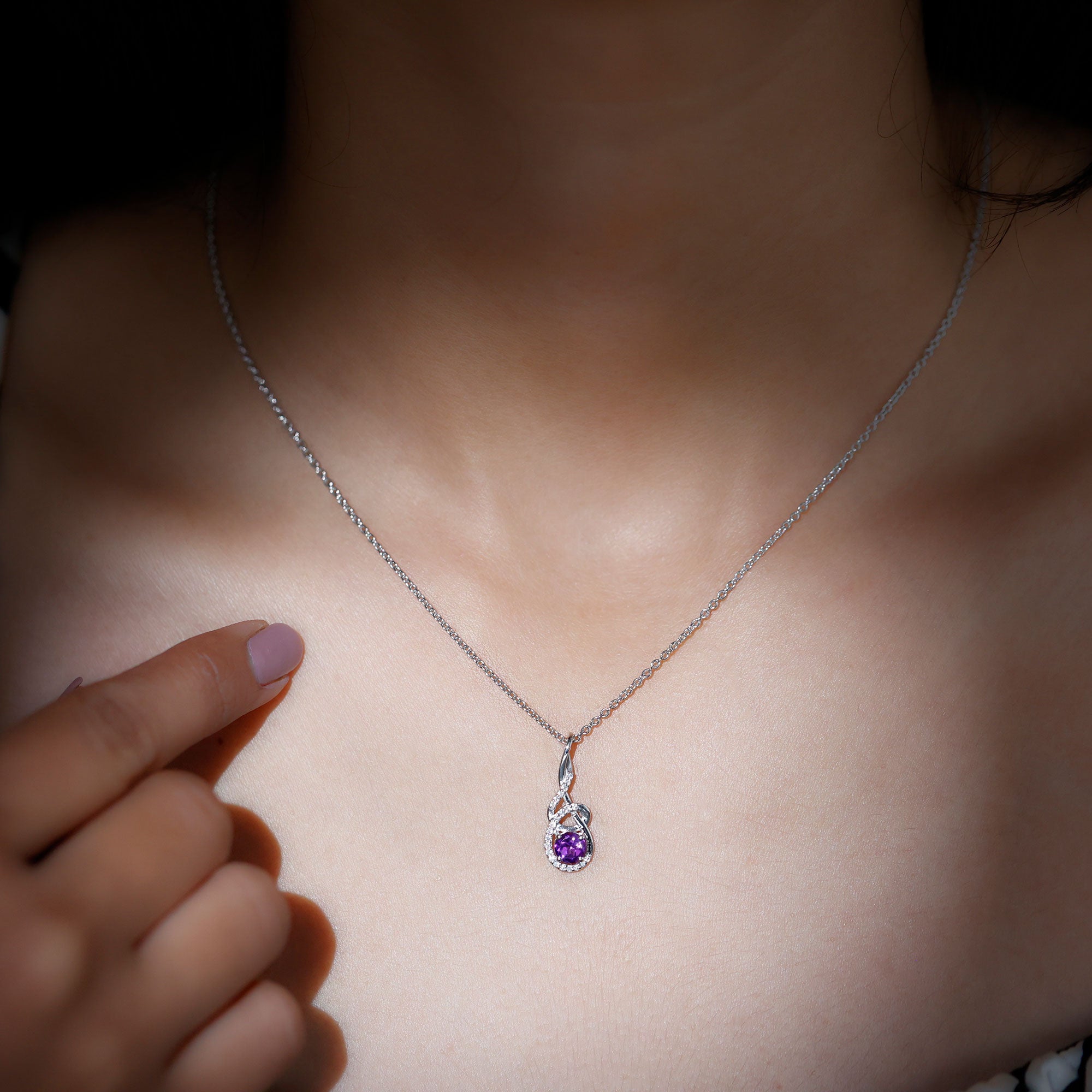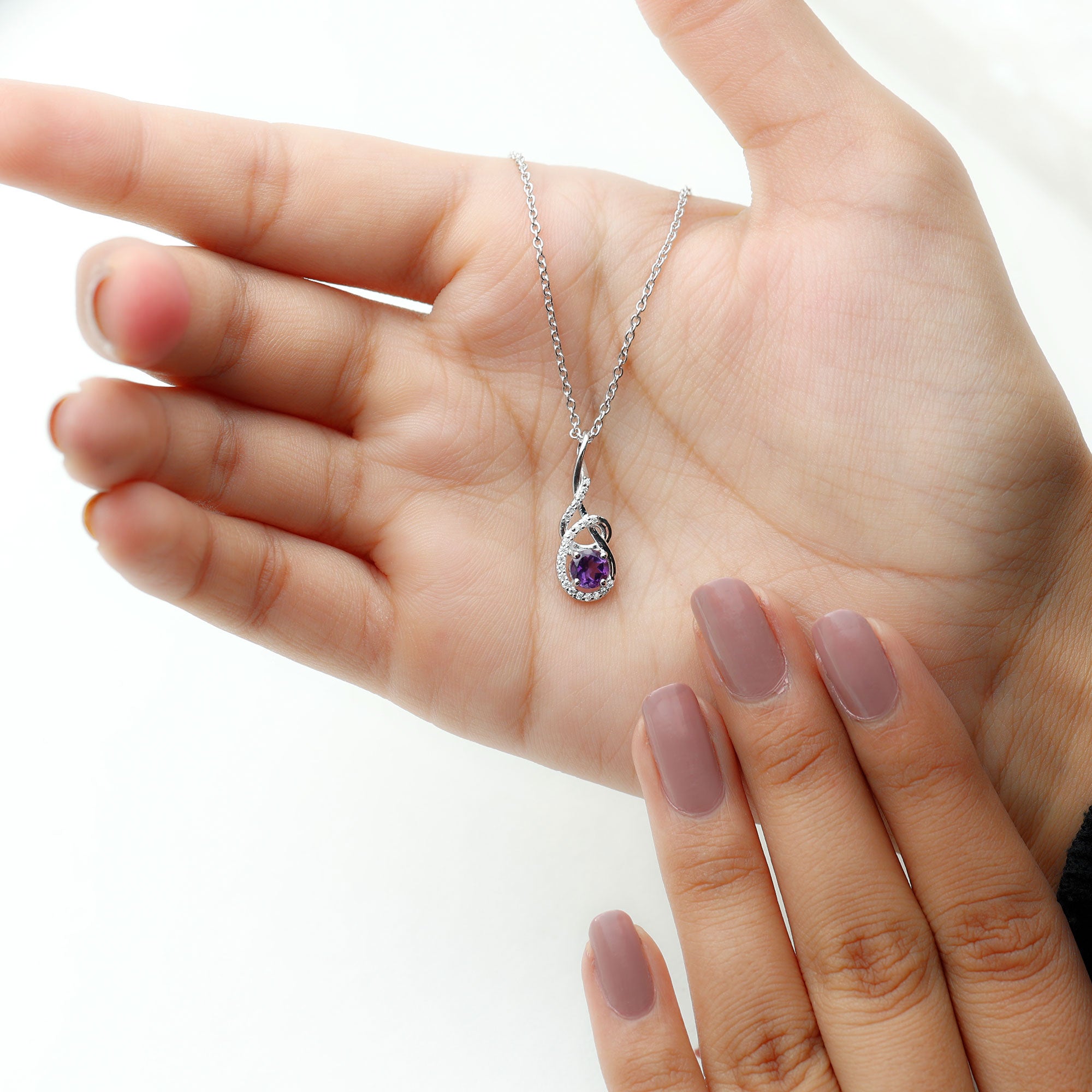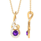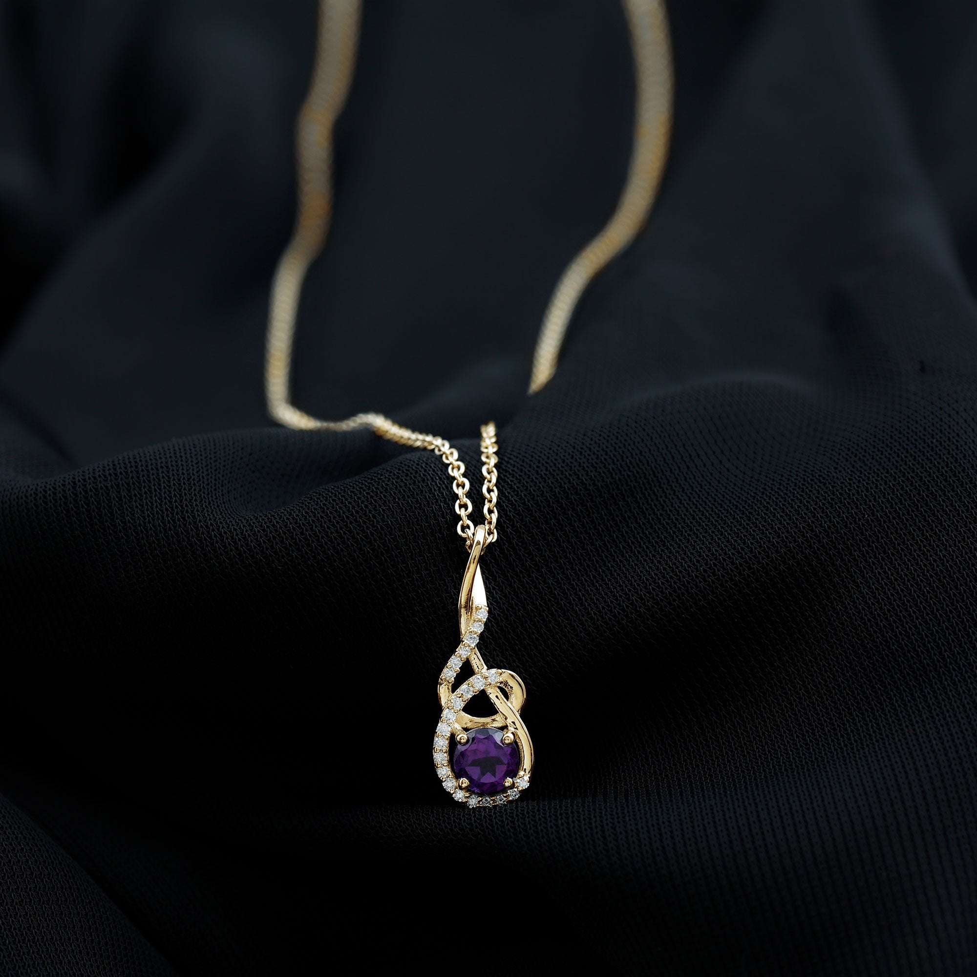 Designer Round Amethyst and Diamond Twisted Drop Pendant