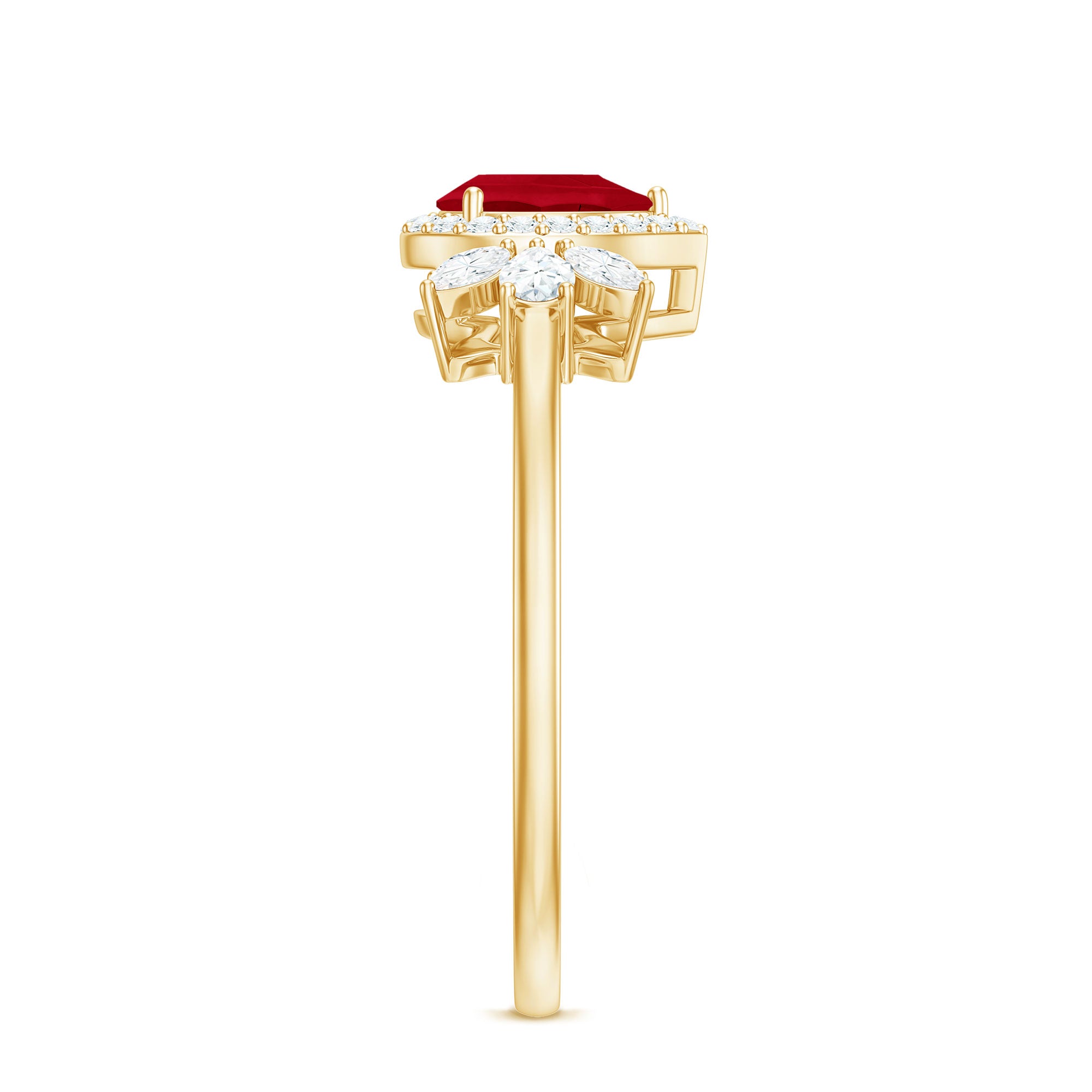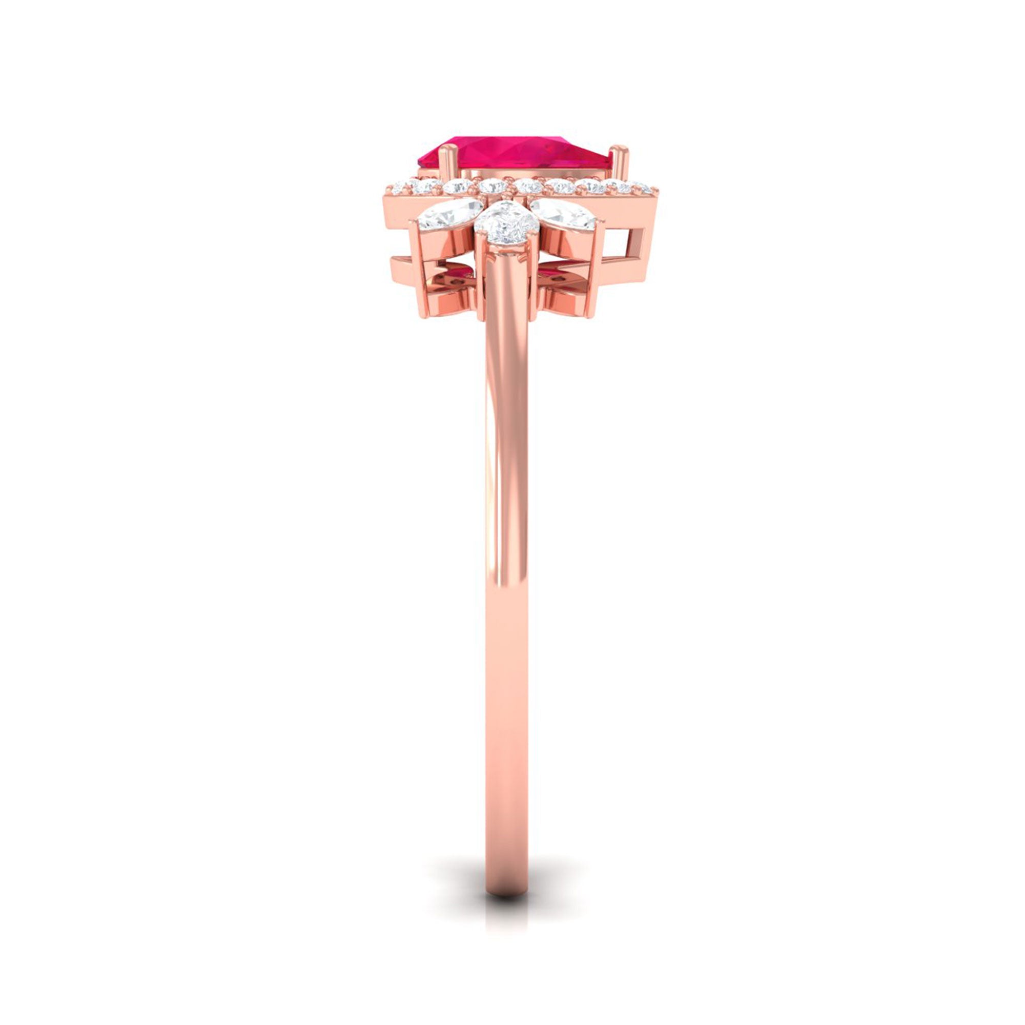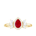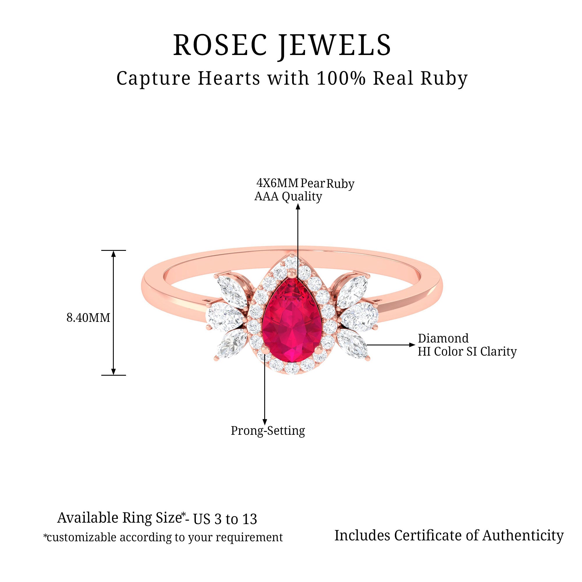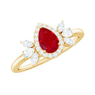 Captivate all eyes with the enchanting Teardrop Engagement Ring, designed to capture attention effortlessly. Featuring a dazzling pear-cut ruby delicately set in a three-prong setting and accentuated with marquise, round, and pear-cut Diamond stones on the engagement ring, this piece is perfect for any occasion.