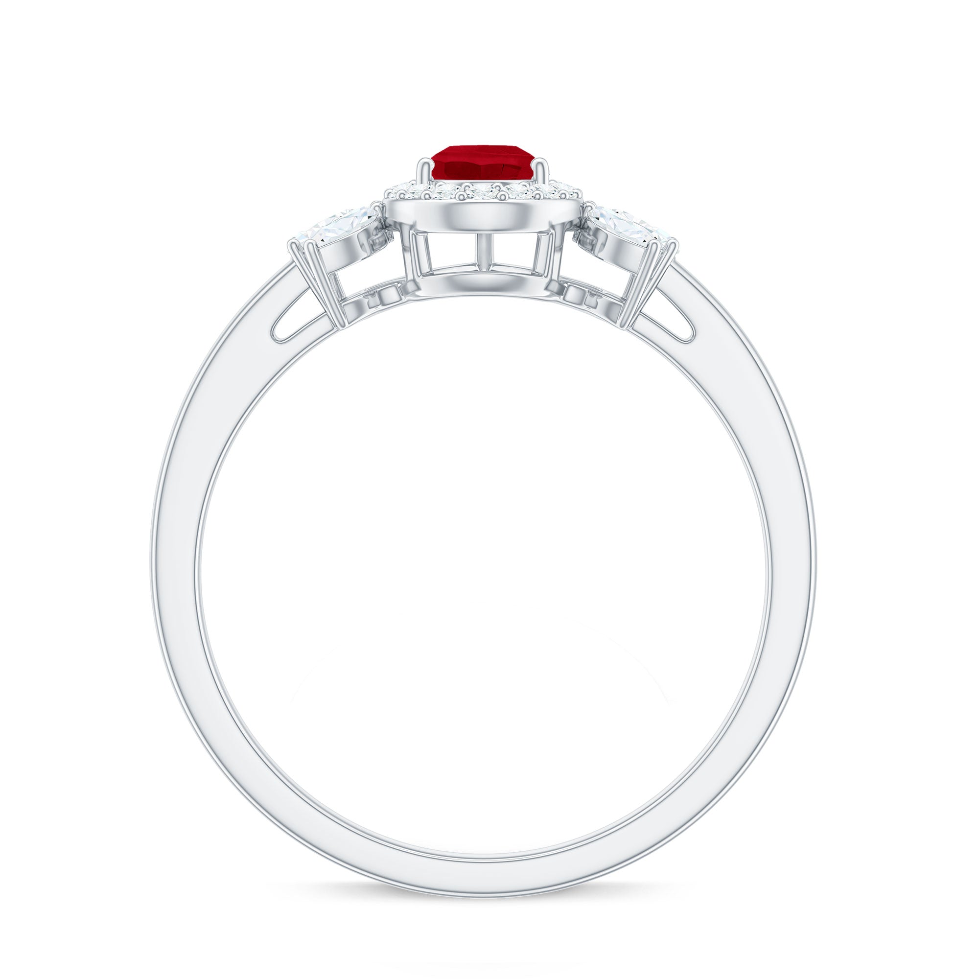 Designer Ruby and Diamond Halo Teardrop Engagement Ring