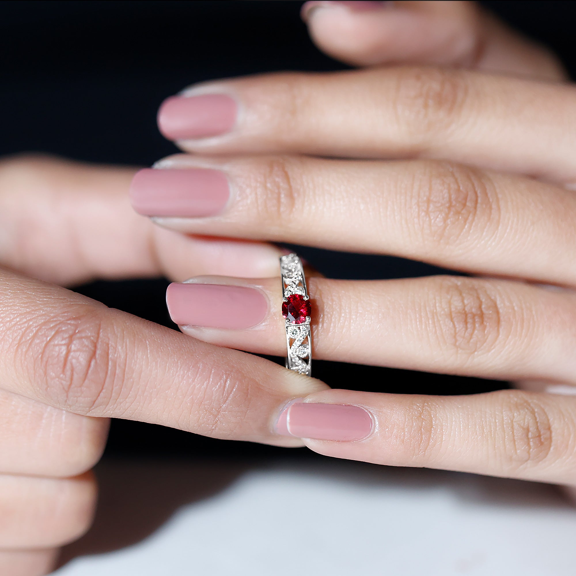 Designer Solitaire Engagement Ring with Lab Grown Ruby and Diamond