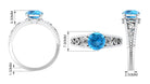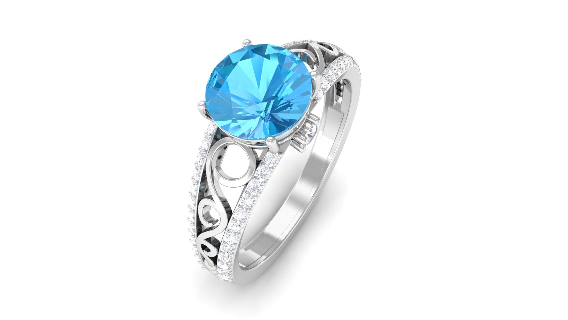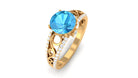 Designer Swiss Blue Topaz Solitaire Engagement Ring with Diamond Accents