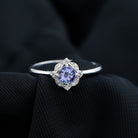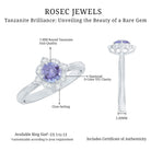 Designer Tanzanite and Diamond Halo Engagement Ring