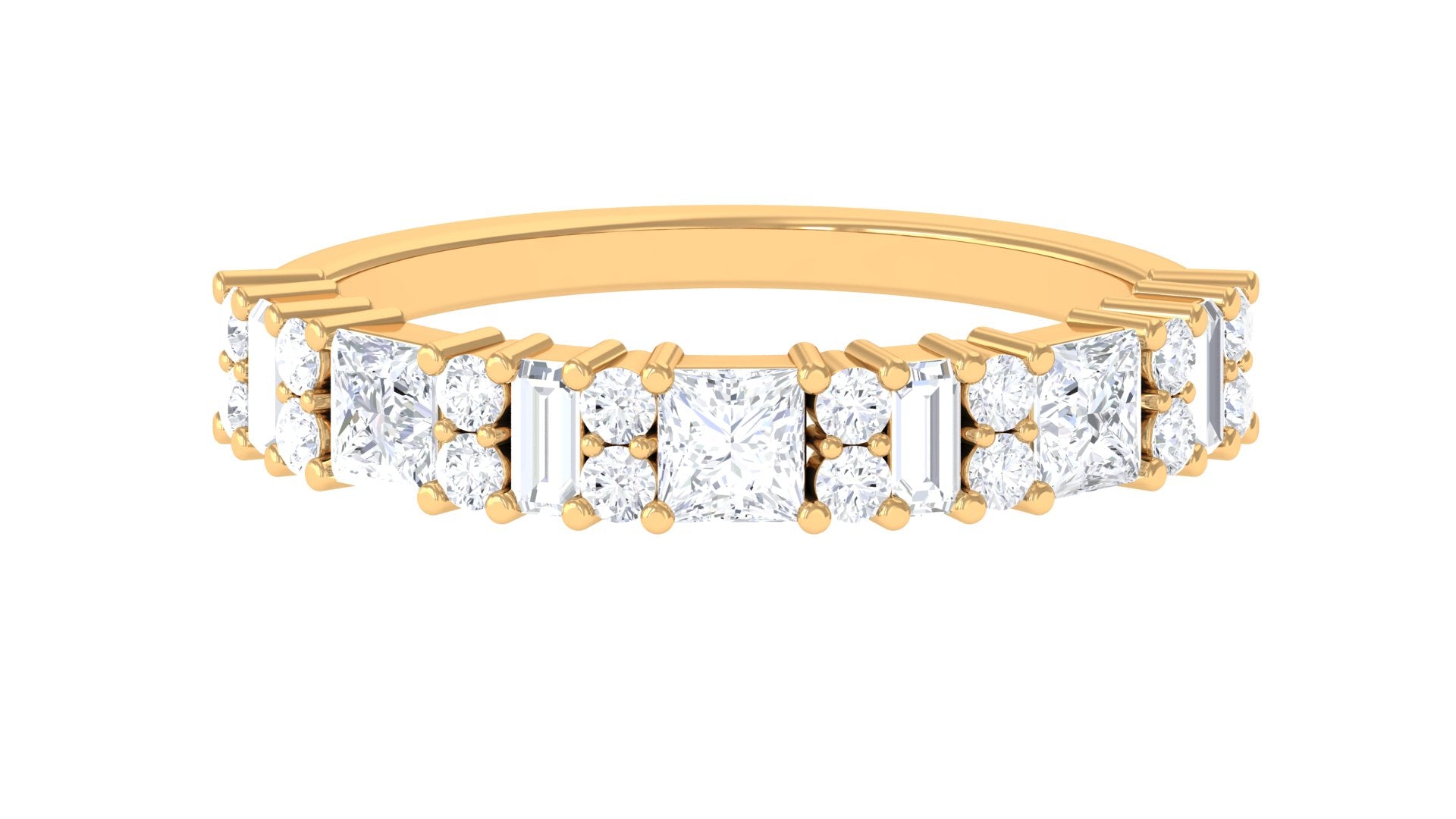 The Zircon Half Eternity Band Ring is a stunning piece of jewelry featuring a continuous row of sparkling Baguette, Round and Princess Cut Zircon stones set in prong Setting. This timeless design is perfect for marking special occasions such as weddings, anniversaries, or birthdays, and adds a touch of glamour to any outfit.