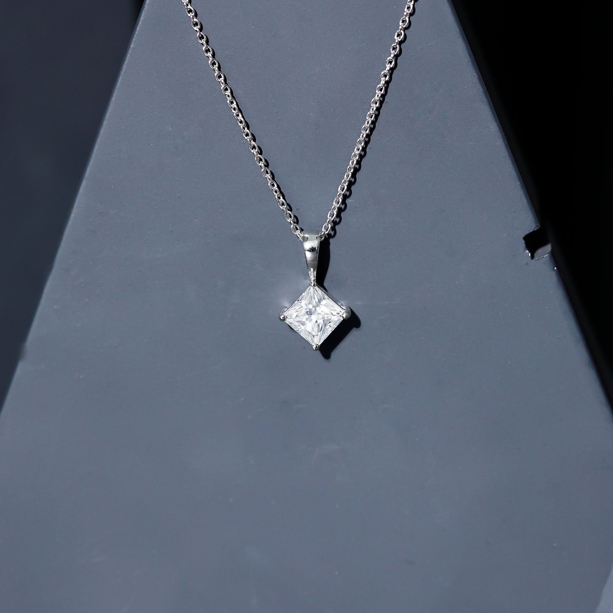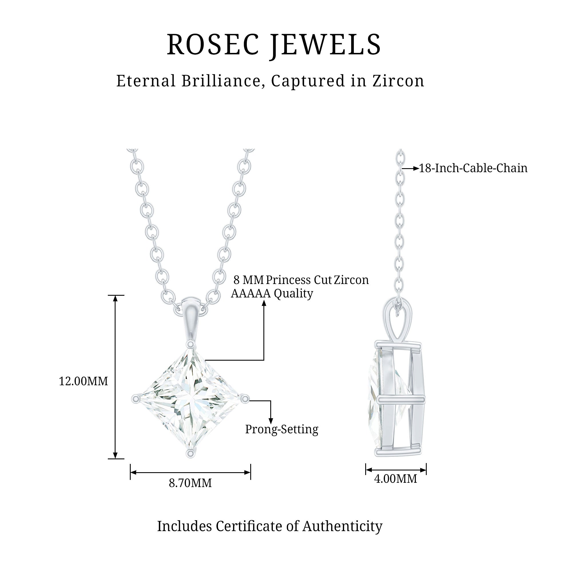 Diagonal Set 8 MM Zircon Princess Cut Solitaire Pendant With Chain