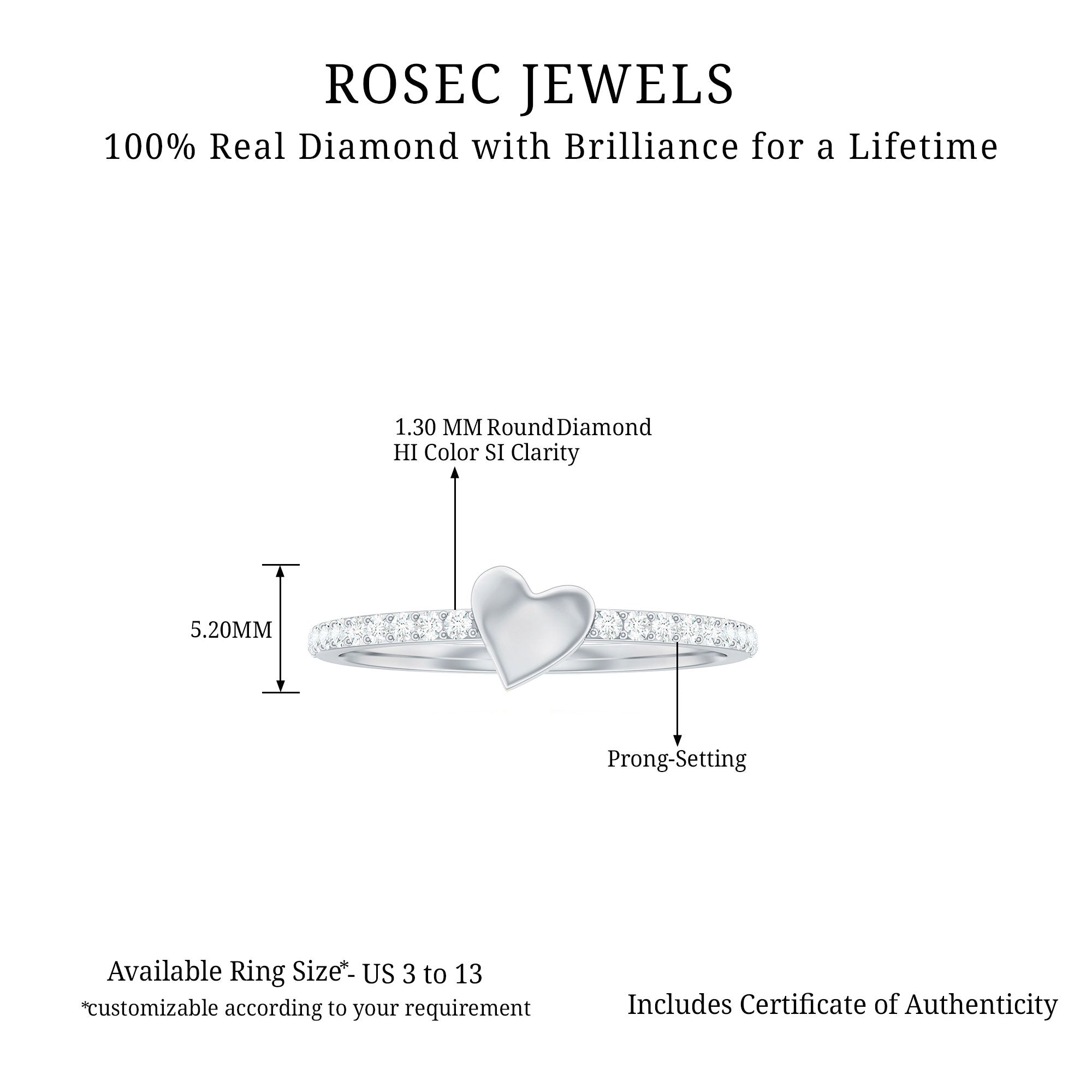 The delightful blend of romance and whimsy this adorable Diamond Promise Ring speaks your style and tells the world its elegant look with its dainty and striking appeal. Radiate love with this Diamond Proposal Ring featuring a symbolic Heart Shape metal, that highlights the eye-catching center. Adorning the shank are the Round Shape brilliant cut Diamond as Side Stones which are perfect for adding a touch of love to any outfit, capturing the essence of heartfelt connections. Sprinkled with Diamond this Heart Promise Ring shows your commitment to celebrating your togetherness. This simple and elegant style Heart Shape Diamond Ring can be stacked with other bands as well or worn alone for a statement look. With exquisite and elegant design, this Pre Engagement Ring suggest a stunning persona that to give you heart is the most romantic thing in your life. Simple and elegant, this Commitment Ring is a tangible symbol of a devotion to one another with the beauty signifying attach to it.
