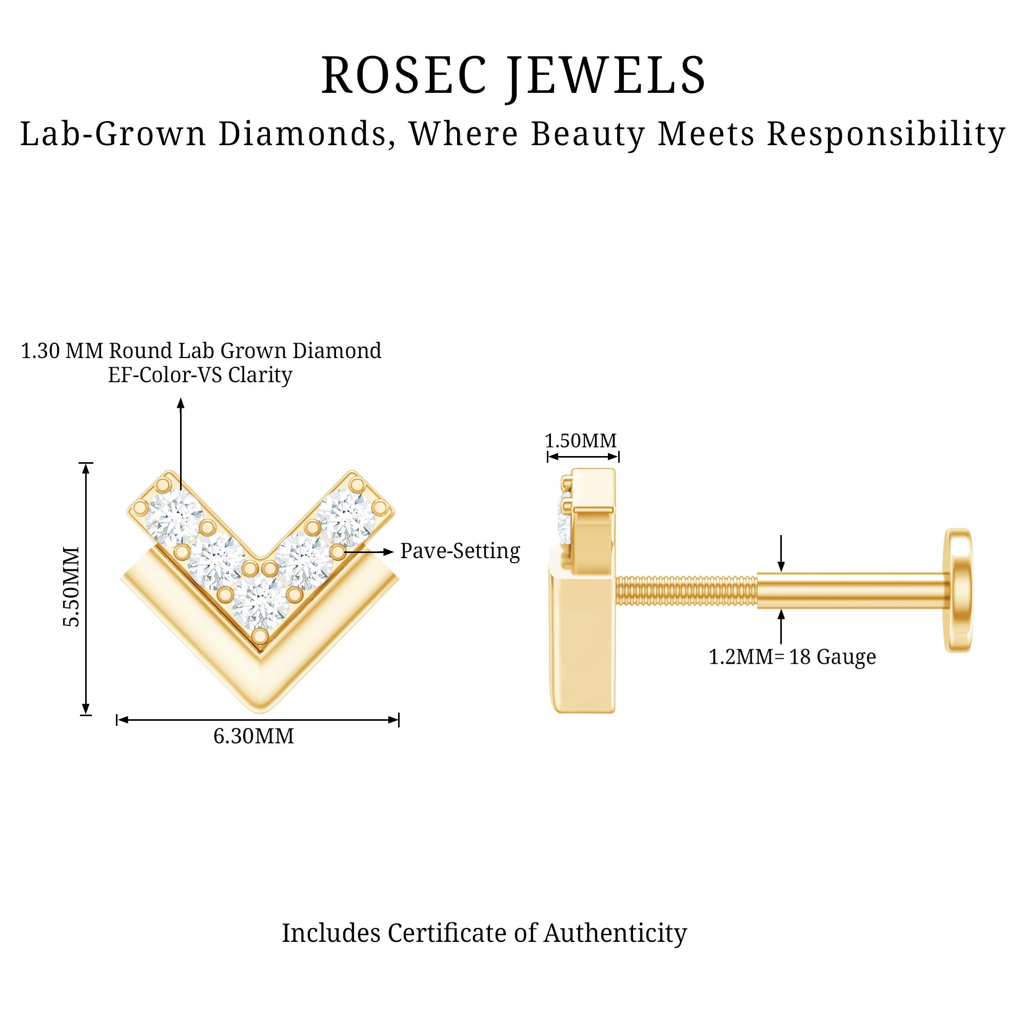 The art of minimalist design can be challenging, especially with multiple piercings that might create a cluttered look. Opt for our Diamond Arrow Earring to strike the perfect balance as it is embellished with Round Diamonds. The minimalistic design of this cartilage earring makes it a lighter and smaller option, ideal for Conch Piercings.Whether you are heading to brunch with friends or enhancing a romantic date night, let this Real Diamond Arrow Earring be your go-to accessory. Surprise your loved ones with the ultimate gift for birthdays or anniversaries – the Diamond Arrow Earring promises to add an extra touch of sparkle.