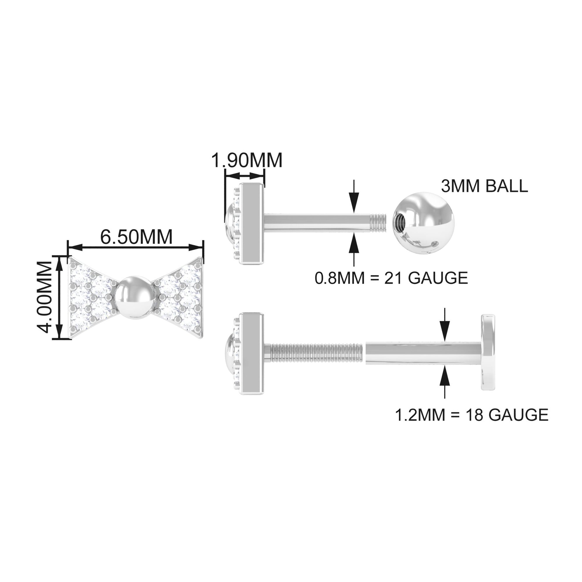Diamond Bow Earring for Helix Piercing