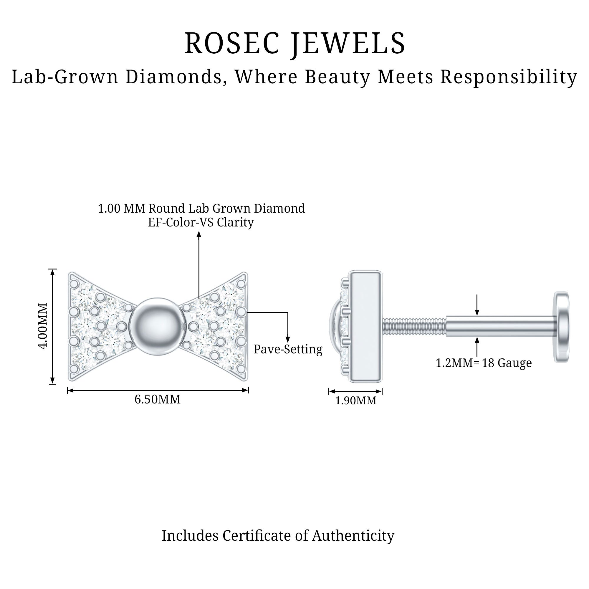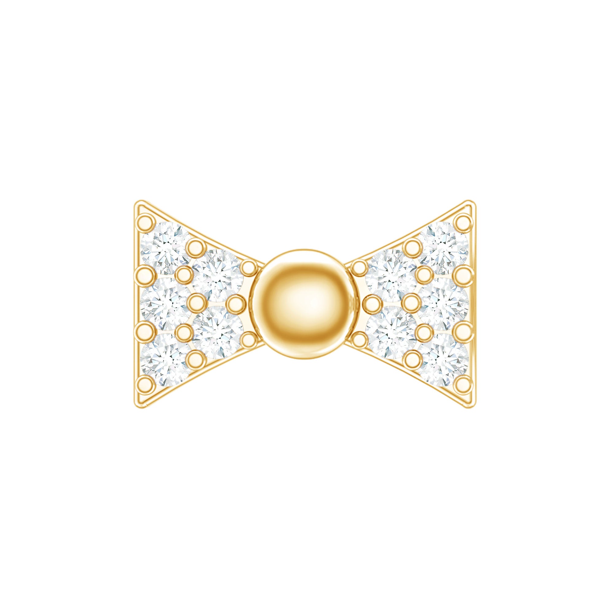 Add some personality to your ear stack with our Diamond Bow Earring embellished with petite Round Diamonds studded in Pave Setting on a cute bow design. It can be paired with an array of ensembles to add a splash of fun. You can wear this stunning earring on your multiple piercings like Tragus, Helix, Cartilage, or Upper Lobe. Style this Bow Earring with your party or casual attires, its a wardrobe essential fashionable, fun, and designed to last a lifetime. So, grab this Diamond Bow Earring for your special ones as a Birthday Gift, Anniversary Gift, Graduation Gift, or Christmas Gift.