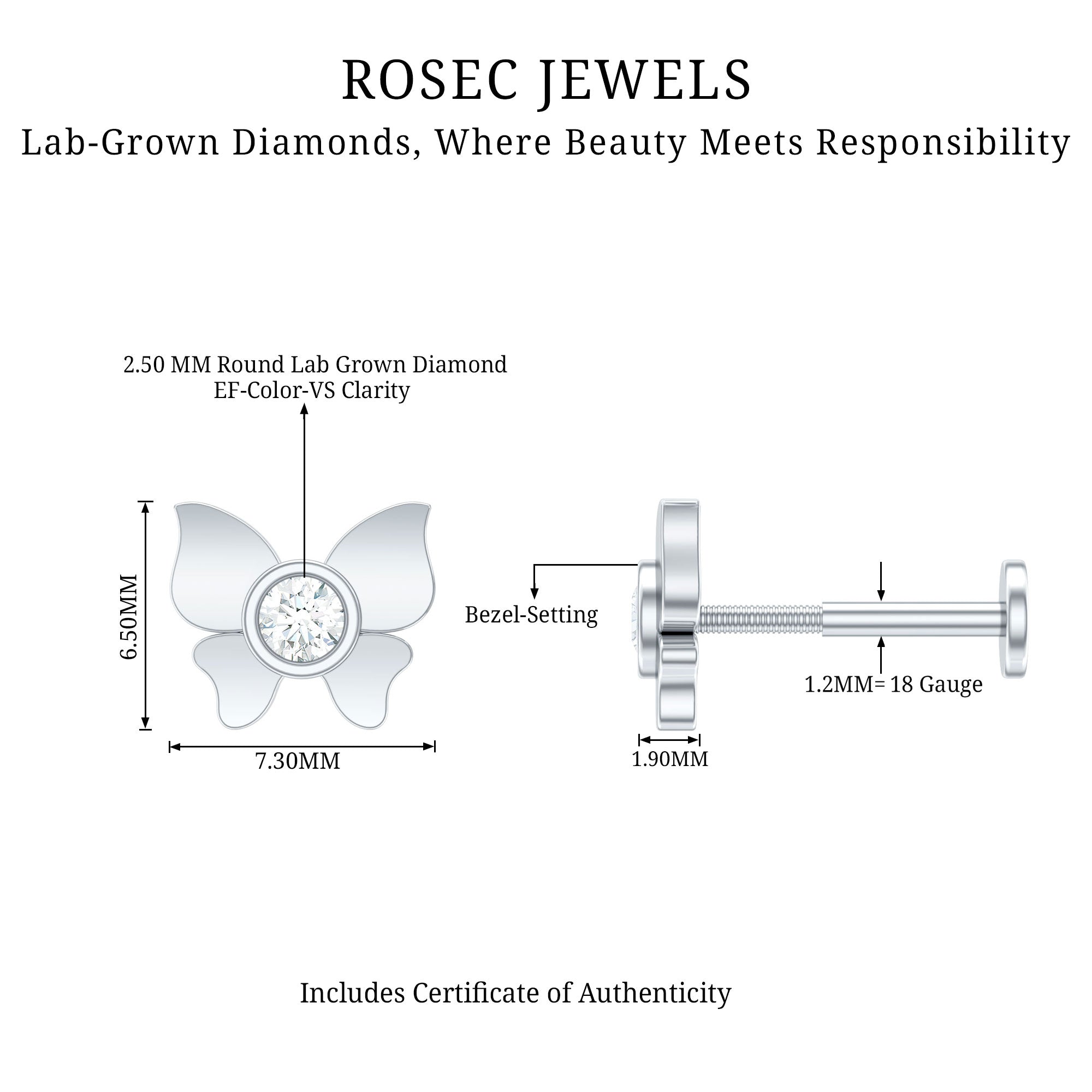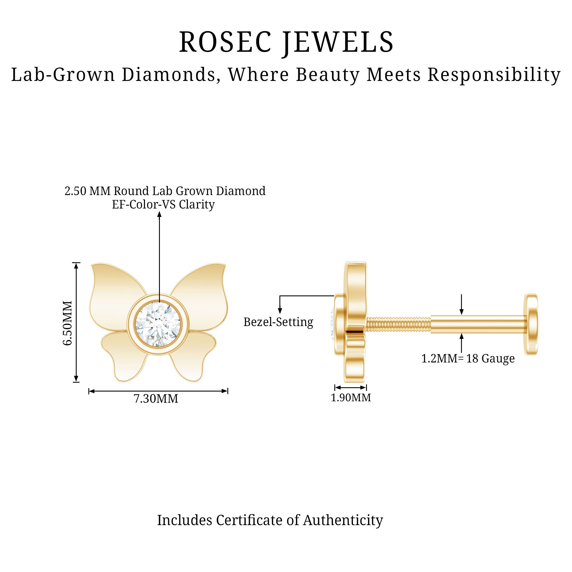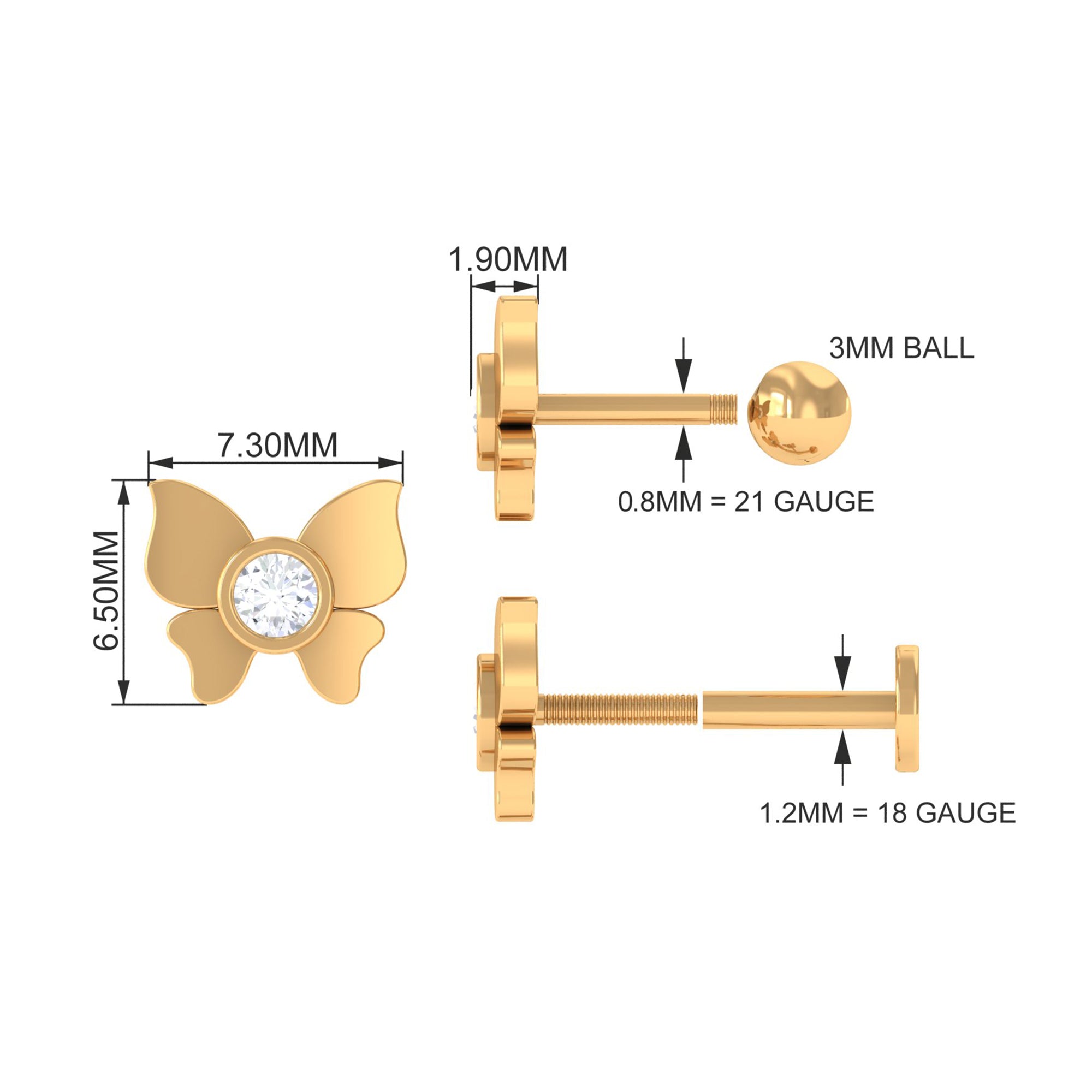 Cute piercing earrings have taken the fashion world by storm, have never been cooler. If you are envisioning an embellished ear and seeking inspiration to create a layered look, consider this Diamond Butterfly Earring.Embellished with a sparkling Round Diamond set in Bezel Setting at the heart of the butterfly design, crafted with Solid Metal. Now, imagine the charm of a Butterfly Earring designed specifically for your Helix Piercing. This delightful piece and embark on a journey to curate your personalized earring ensemble.