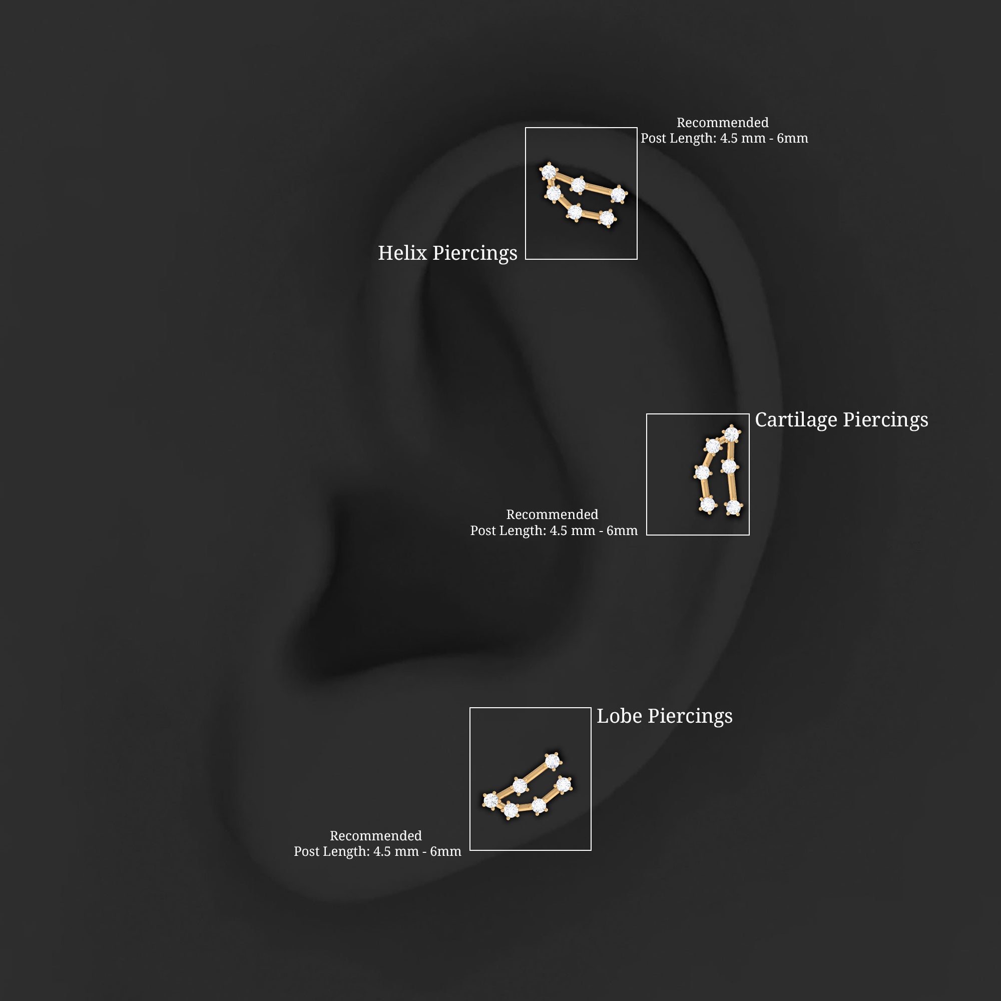 - This versatile Diamond Zodiac Earring is perfect for various piercings like Helix, Cartilage, or Upper Lobe Piercing. The flat back closure will keep it secured in place.