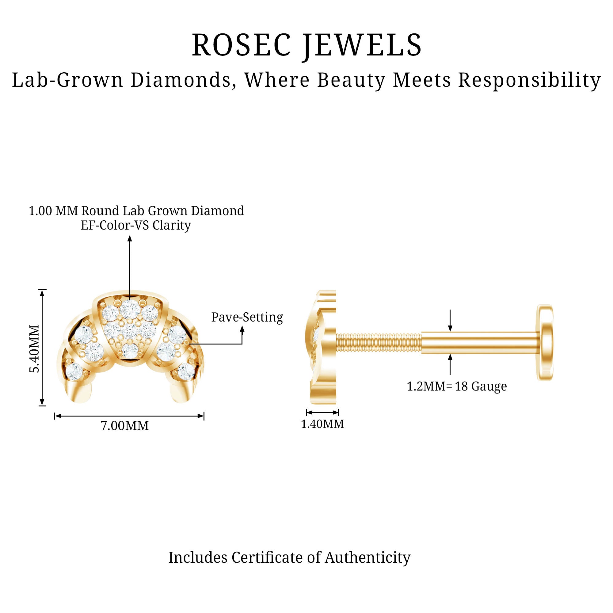 Ever pondered the exquisite allure of adorning your ear with a Diamond Croissant Earring? Envision a mesmerizing array of Round Diamonds intricately nestled within the folds of a delectable croissant-inspired design. Each layer boasts a chunky spiral, elevating your ear stack to sweet elegance. Ideal for the helix, cartilage, or upper lobe, its secure flat back closure ensures a snug fit that lasts.Imagine the delight of gifting this Diamond Earring, a unique and unforgettable birthday surprise, or bestowing it upon a cherished someone as an expression of your profound affection.