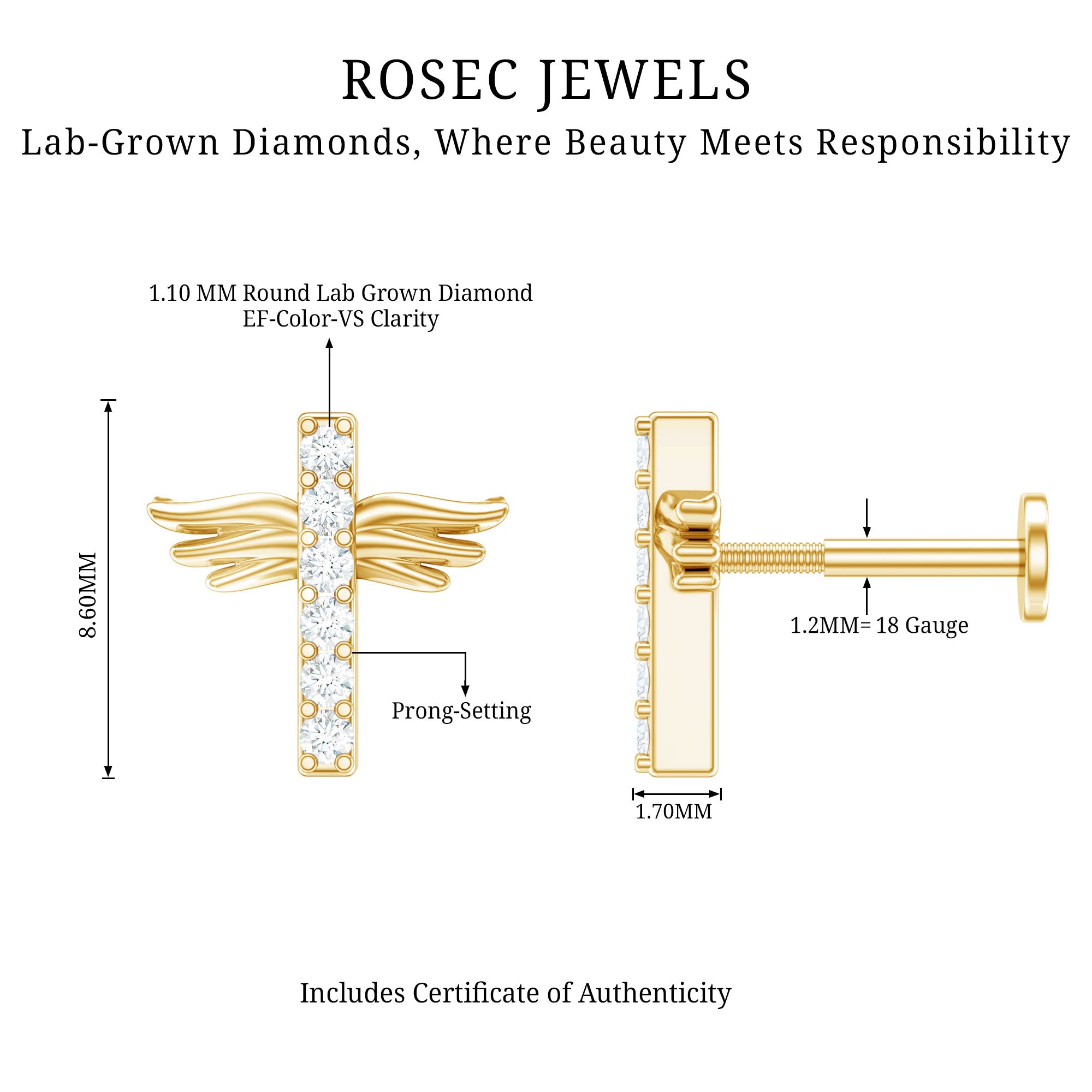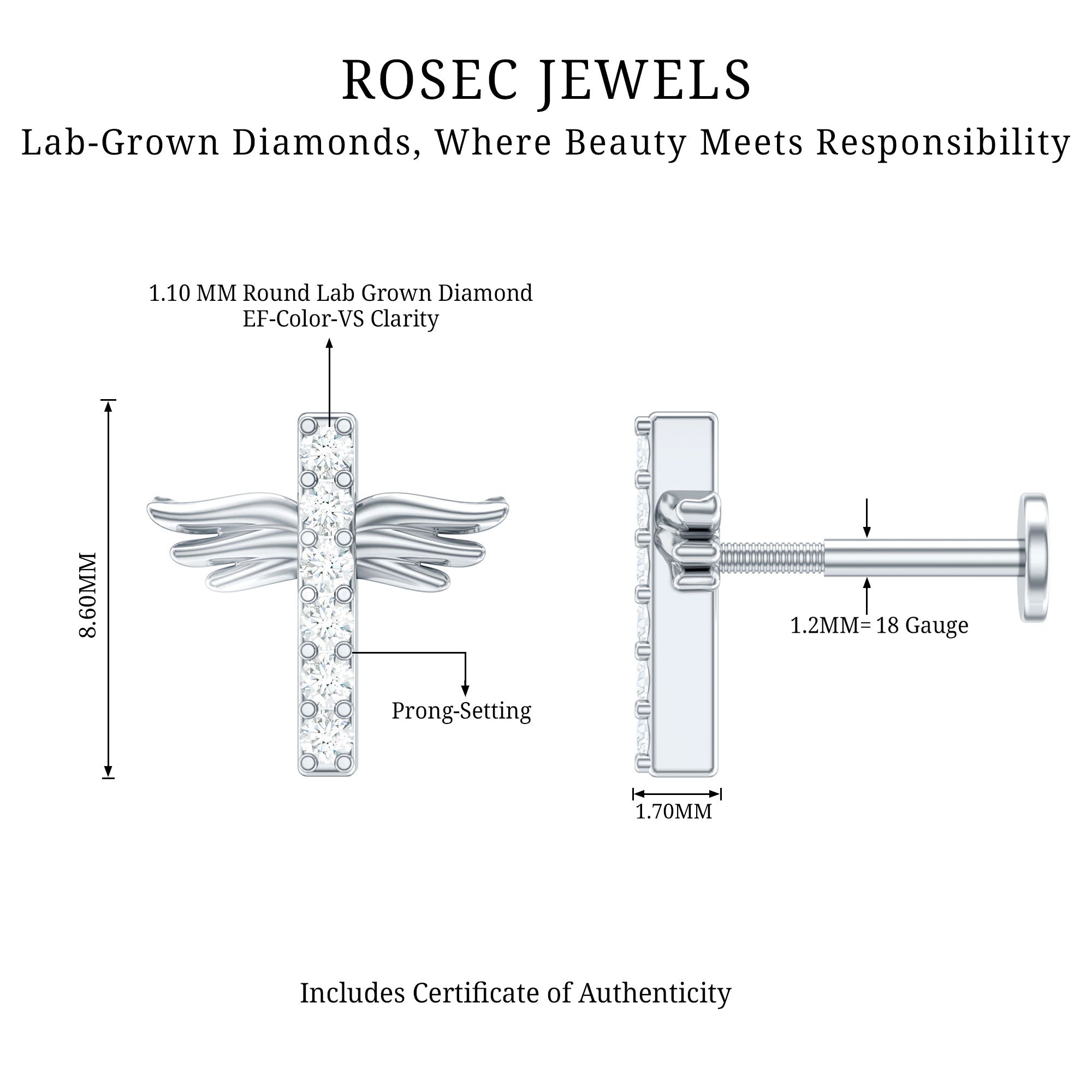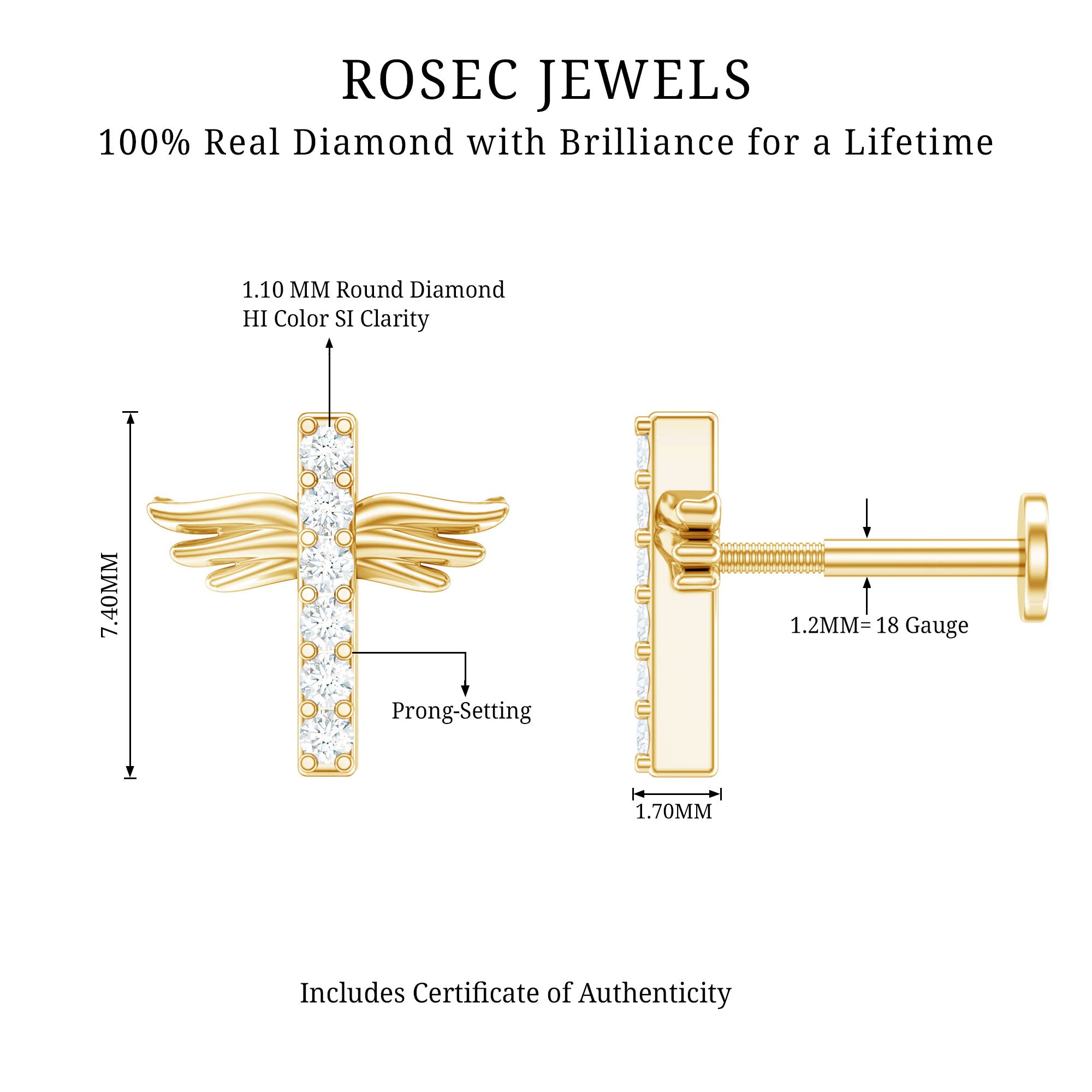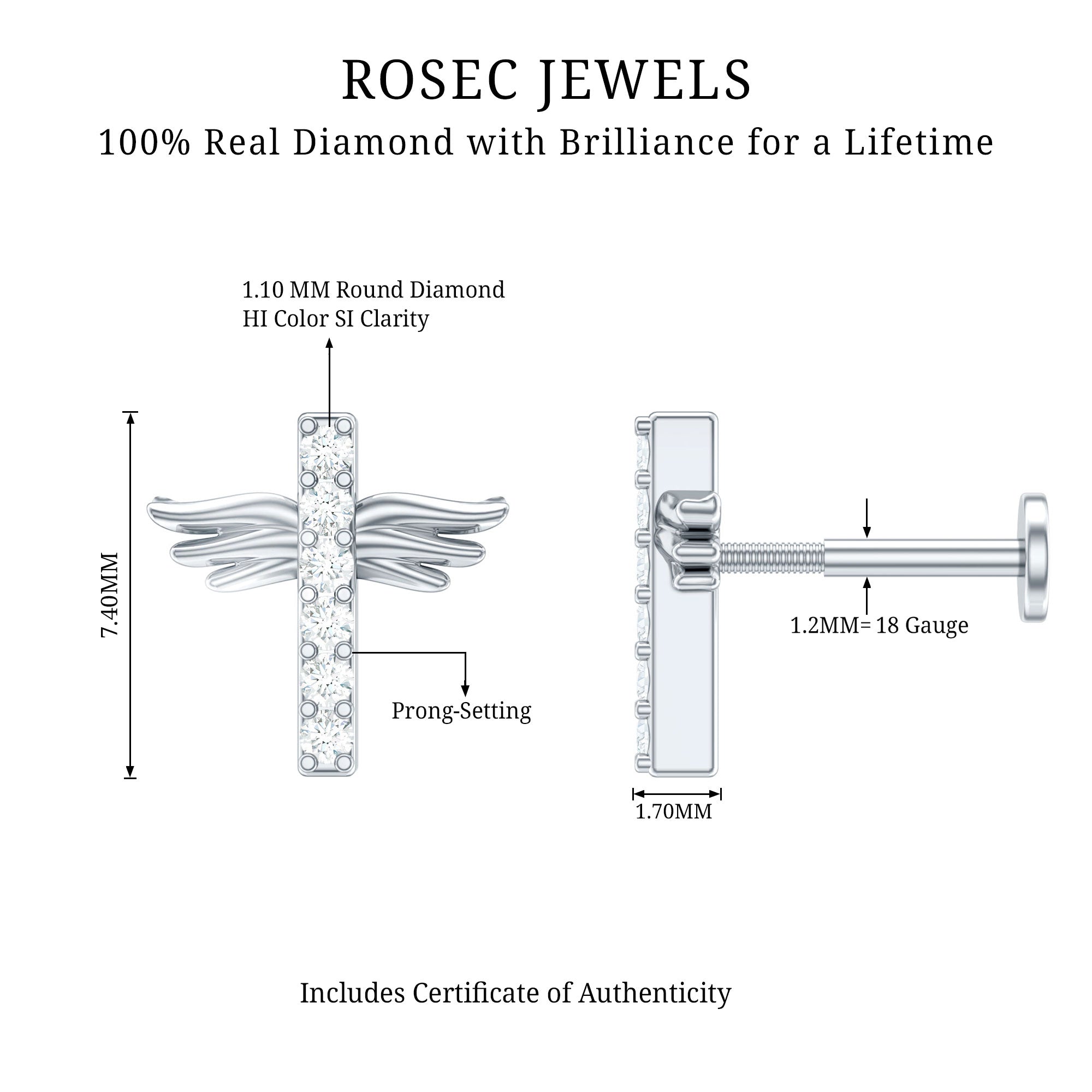 Let your faith shine with that low-key bling! Picture this: a tiny cross jazzed up with a sprinkle of Round diamonds secured by Pave Setting.This Diamond Cross Earring brings that subtle yet sparkly vibe to your style game. Enhance your Helix, Cartilage, Tragus, Conch, or Upper Lobe Piercing with it. The Flat Back Closure will keep this Diamond Piercing Earring tightly intanced to its place. And Here is a pro tip: gift this jaw-dropping Cross Earring to your special someone on their birthday. Trust us, youll be adding a whole lot of sparkle and joy to their day!
