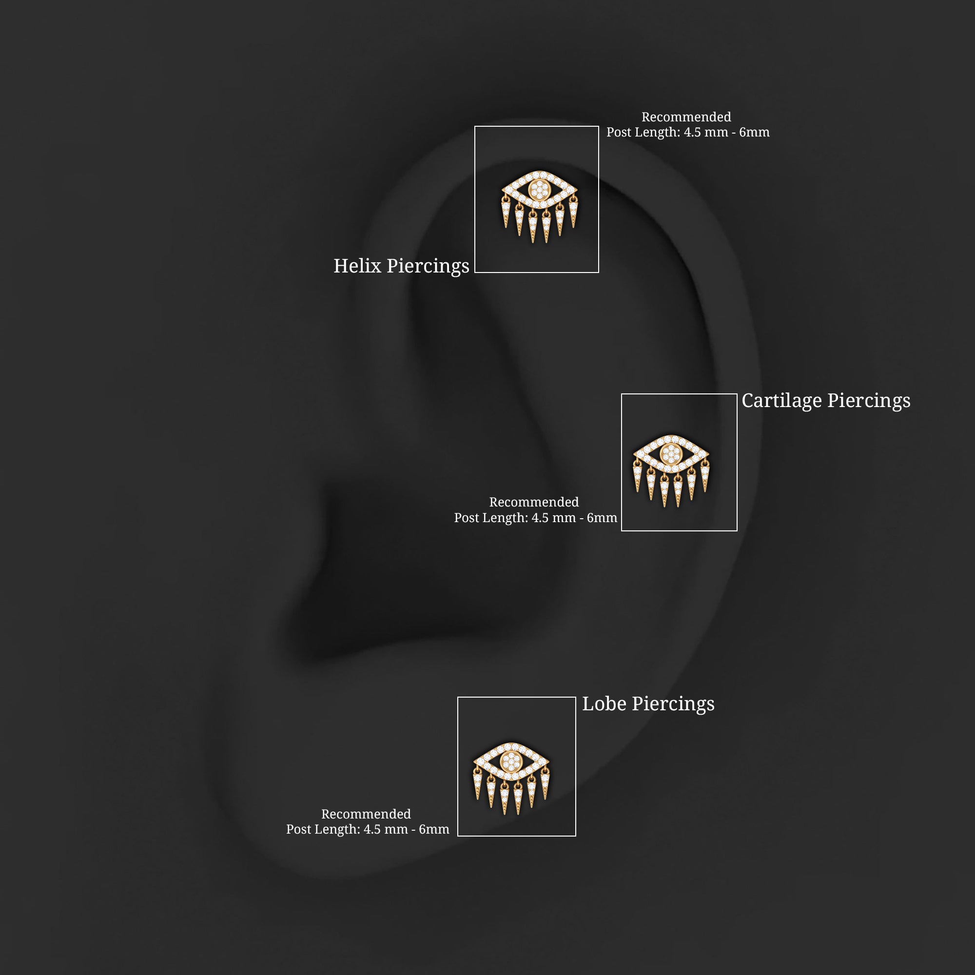 Diamond Evil Eye Earring for Upper Lobe Piercing